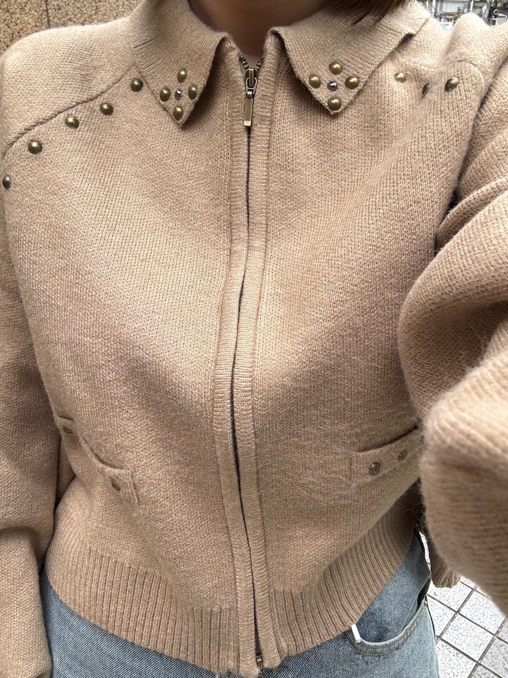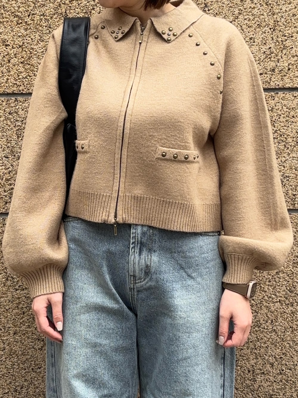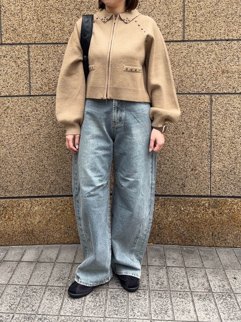 スタッズが可愛いニットでカジュアルコーデを組んでみました!