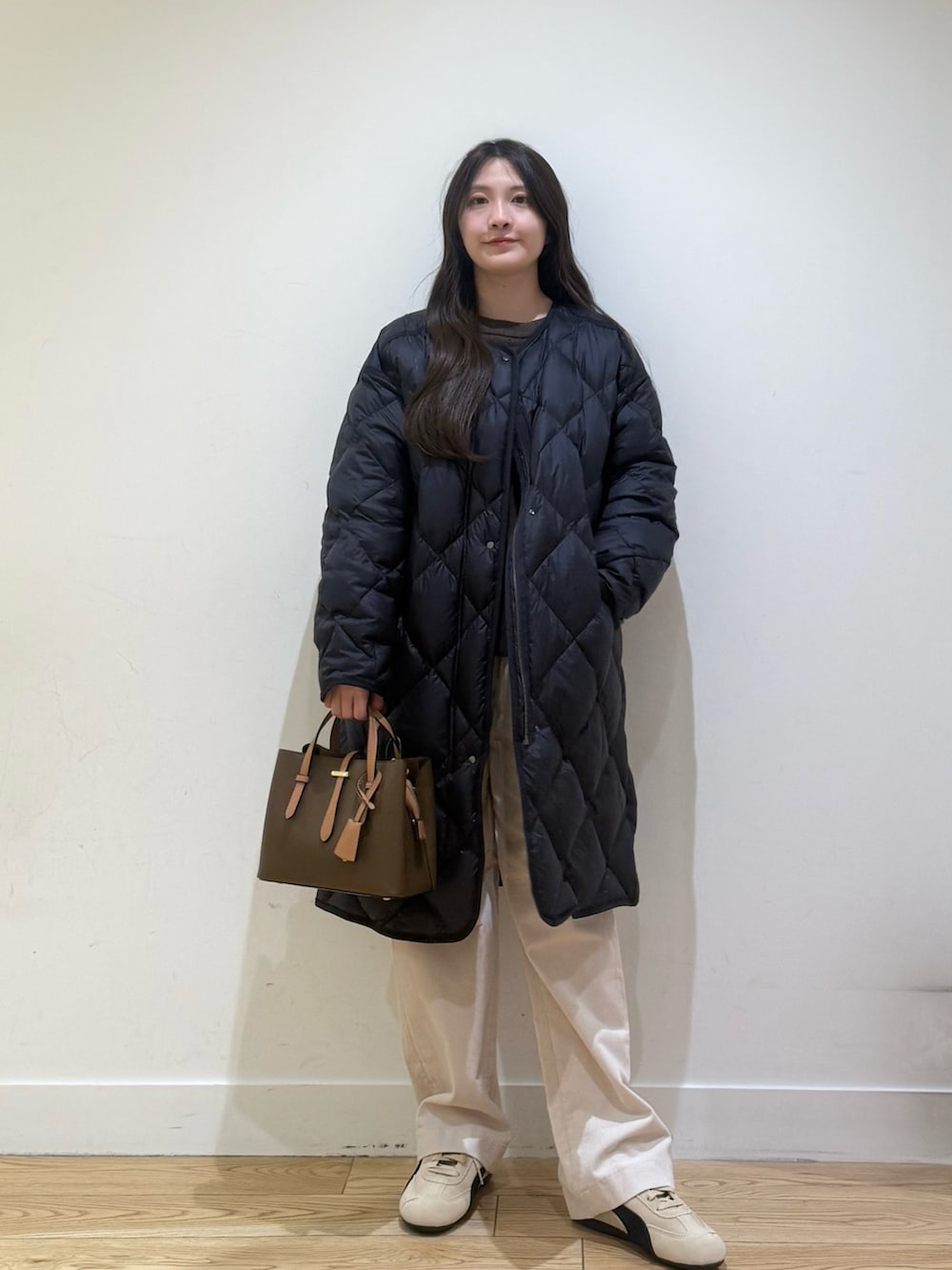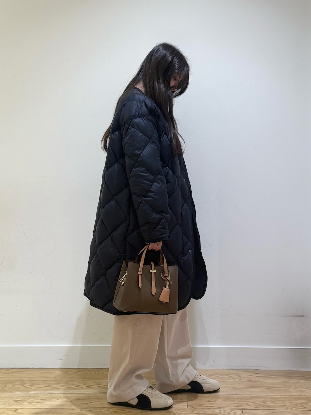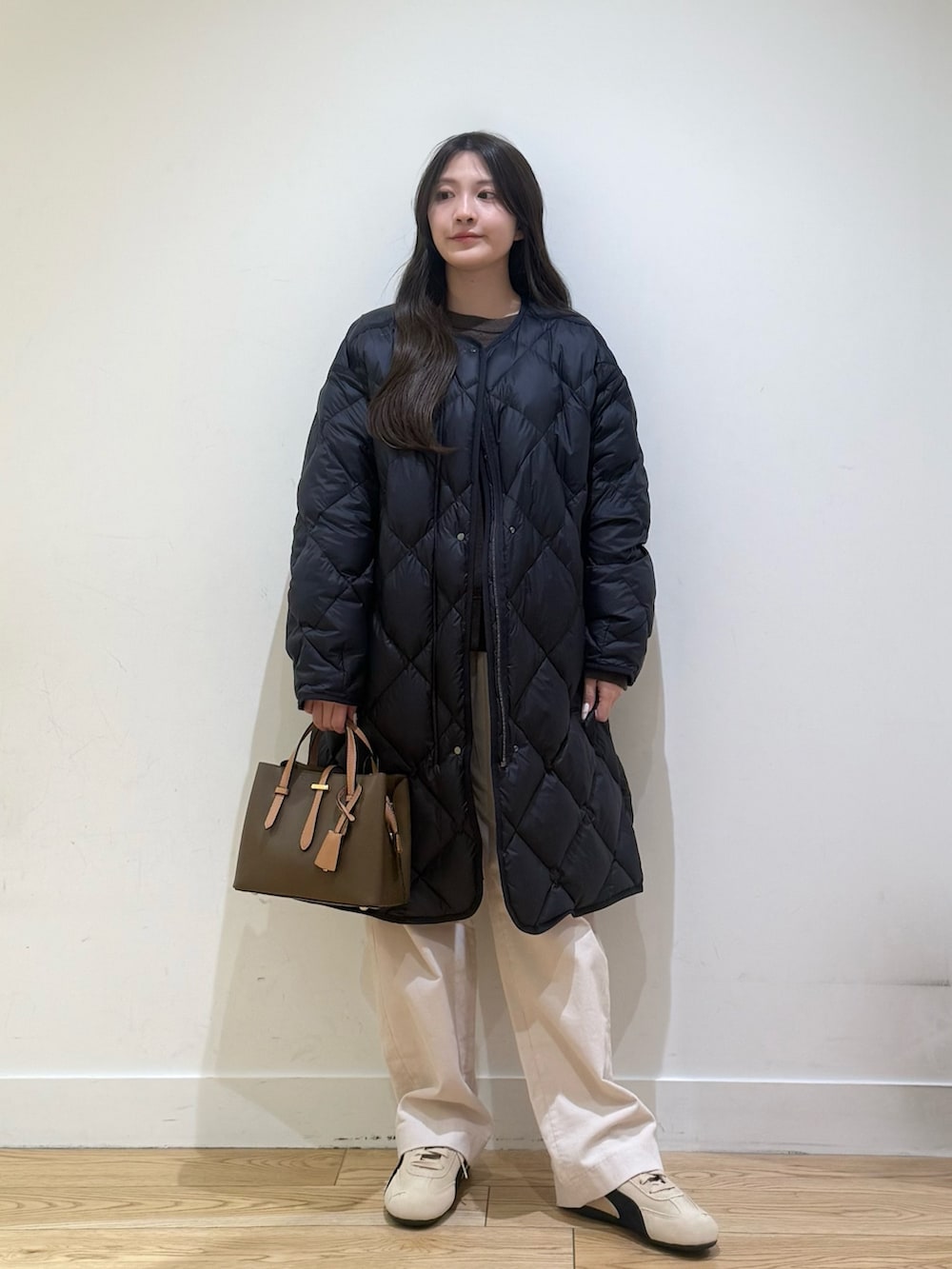ライトダウンキルトロングコートは、軽くてしっかり暖かく、インナーダウンとしても使えるのでおすすめです!