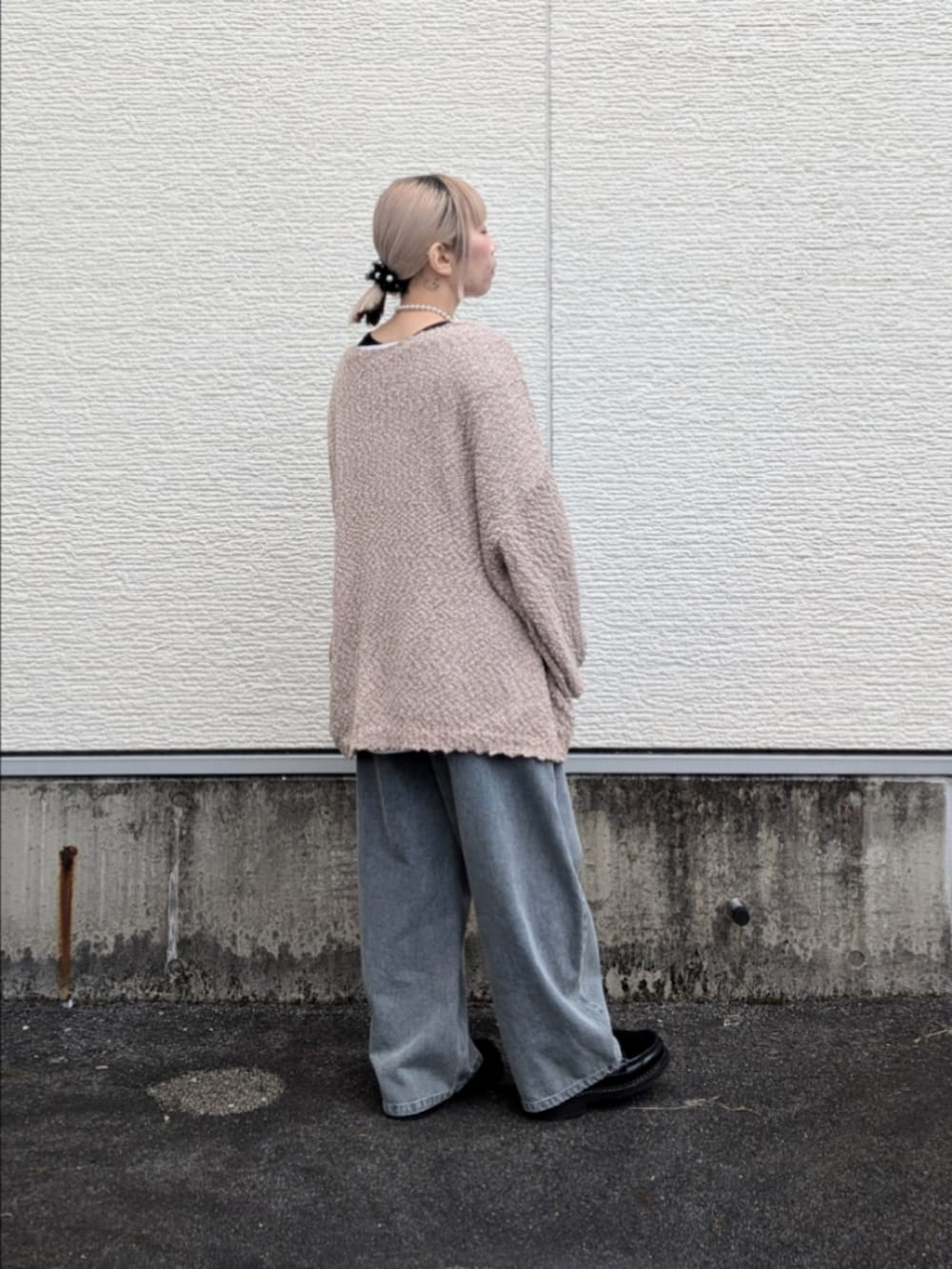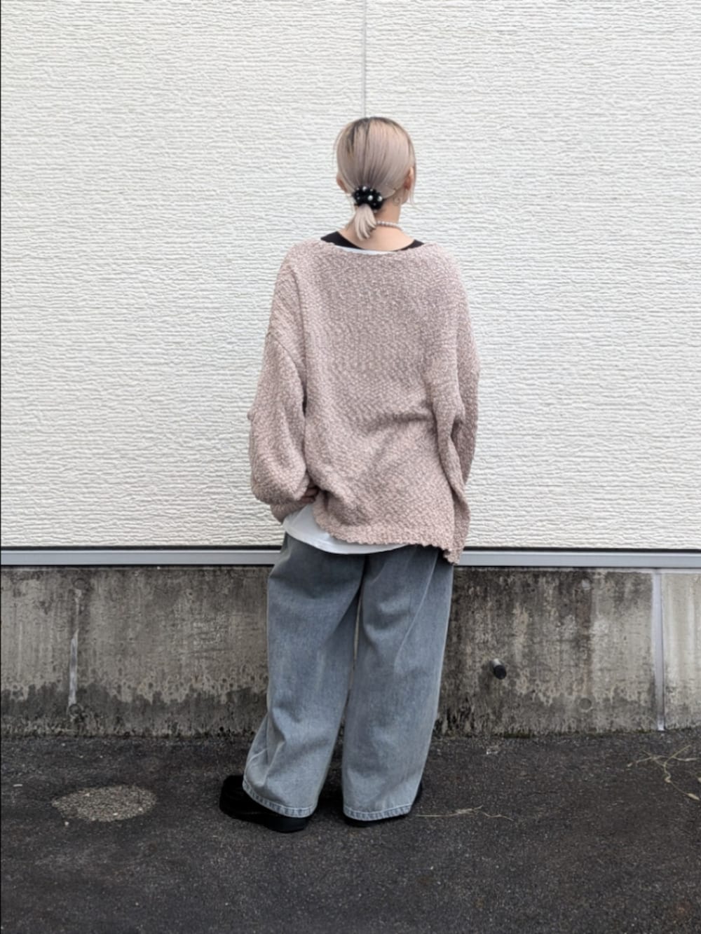 ざっくり編みで大分ゆったりしたサイズ感🧶
