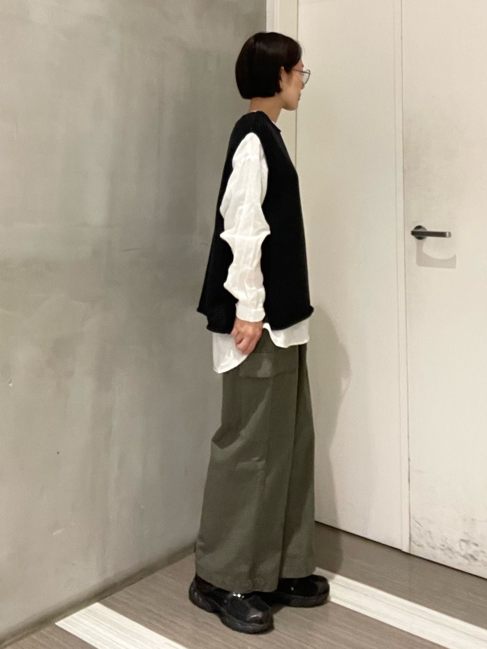ボトムスにはユーティリティーイージーパンツを合わせ