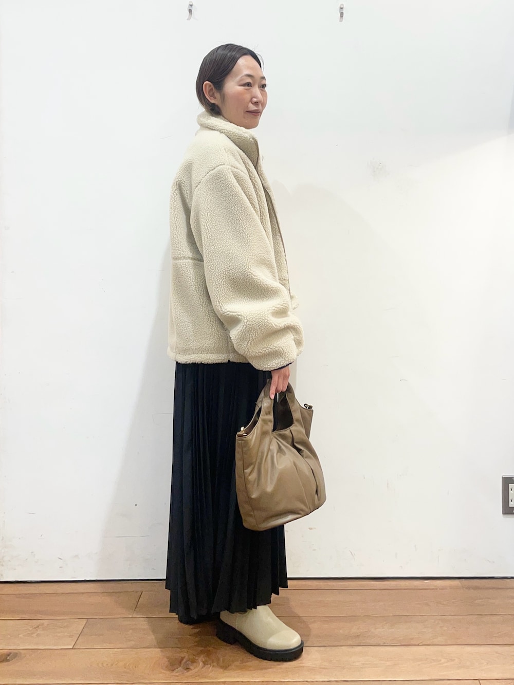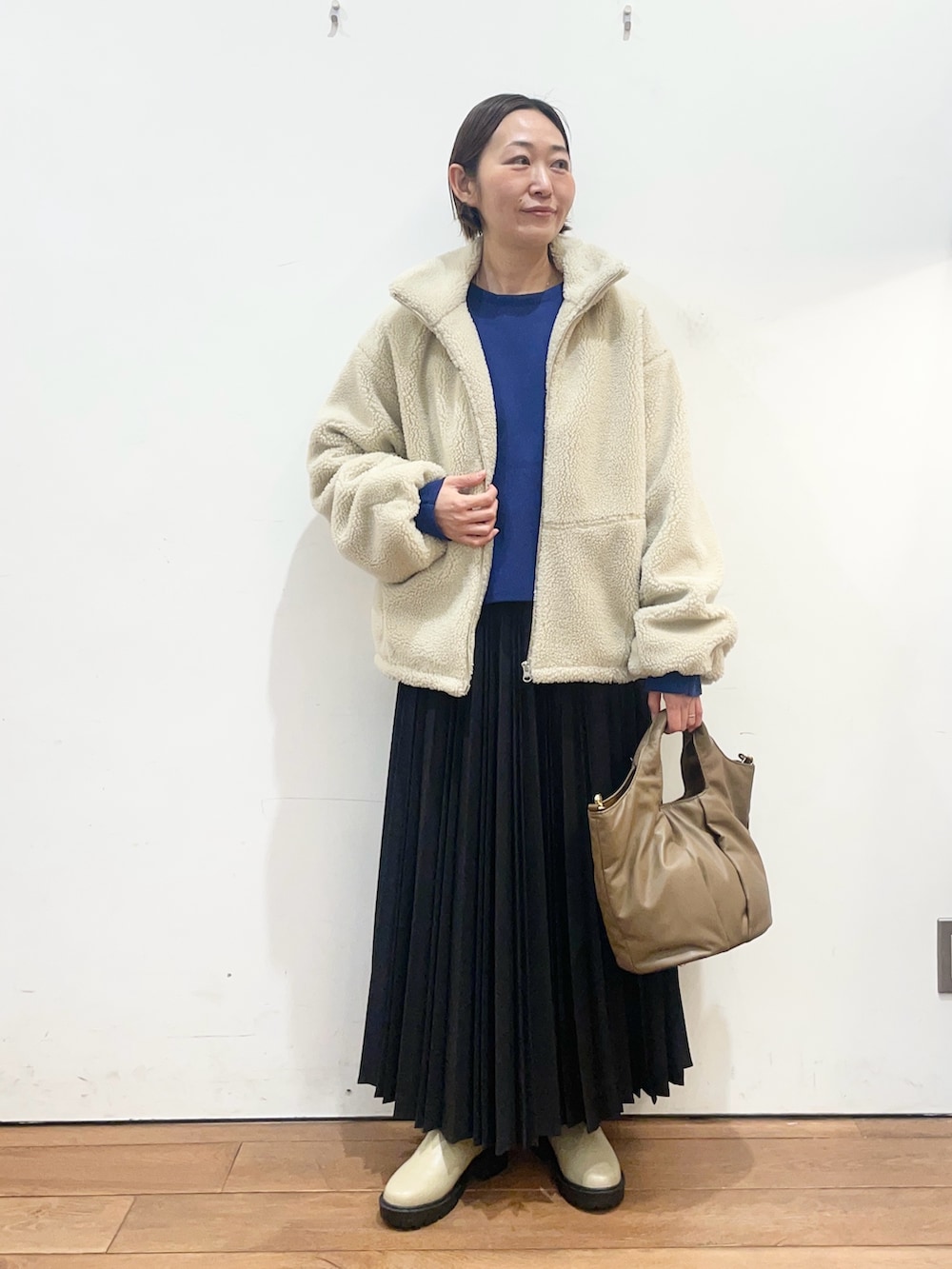 ボアブルゾンはとにかく軽くて、たっぷりとしたシルエットなので中に着込めます☺️