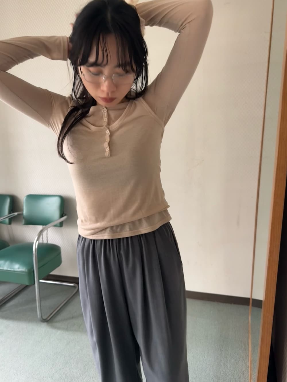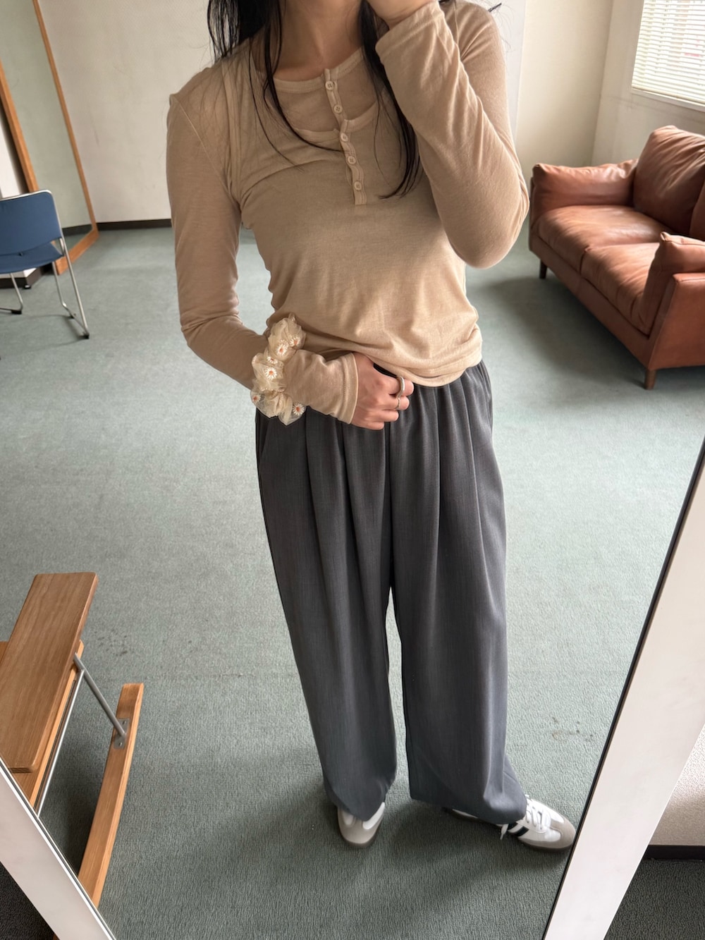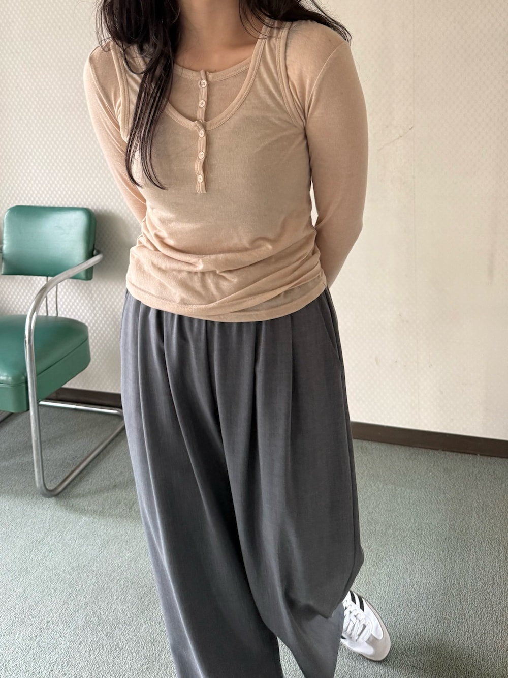 ボトムはイージーなので穿きやすく、シルエットも太めで今っぽく着られます。