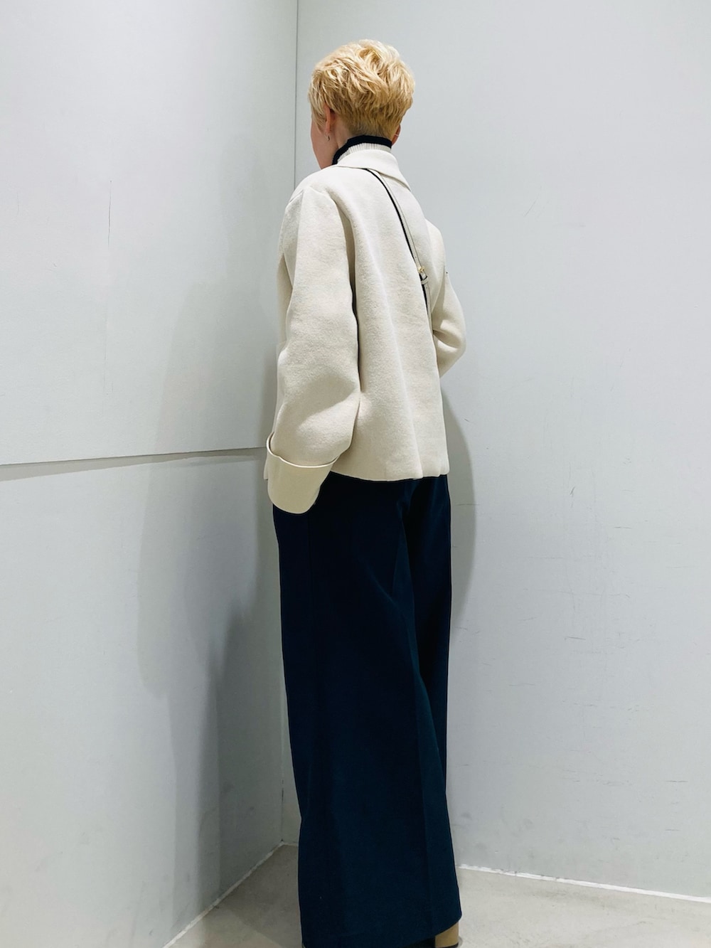 大きなボタンがポイントのニットジャケット、張りのある素材でシルエットがきれいです!短めの丈感は、ボトムとの相性良くスタイルアップしてくれます👍