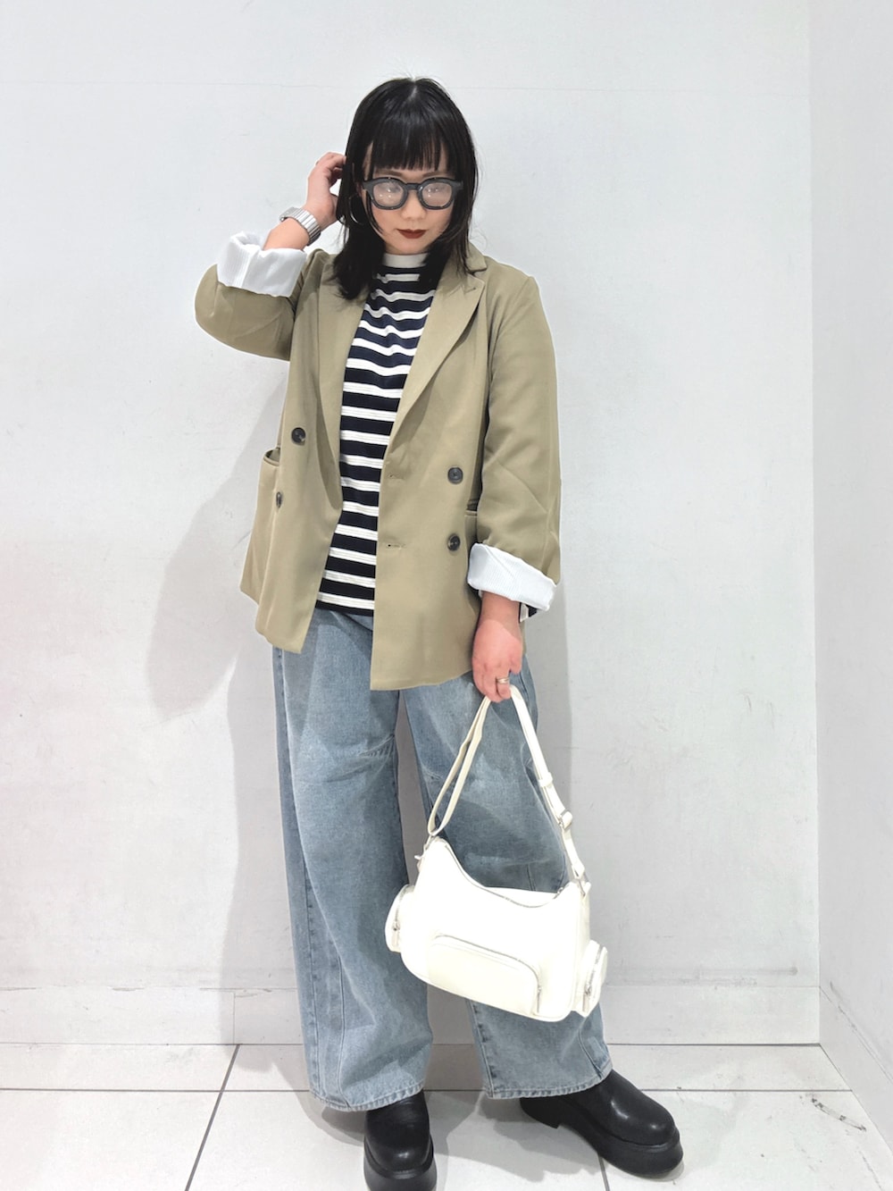 キレイめジャケットにボーダーとデニムを合わせてカジュアルに🌸