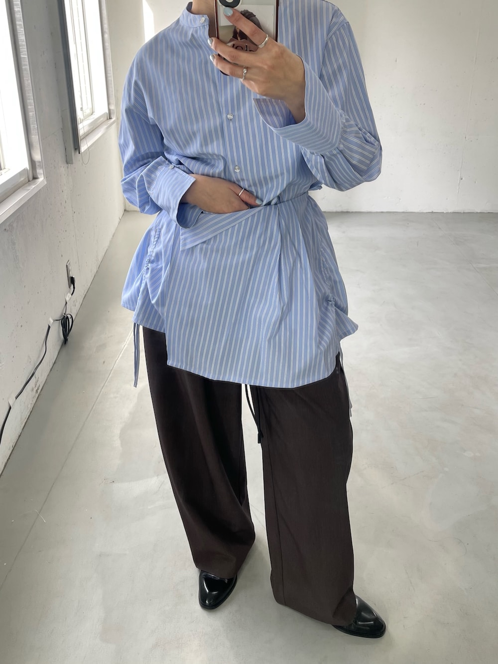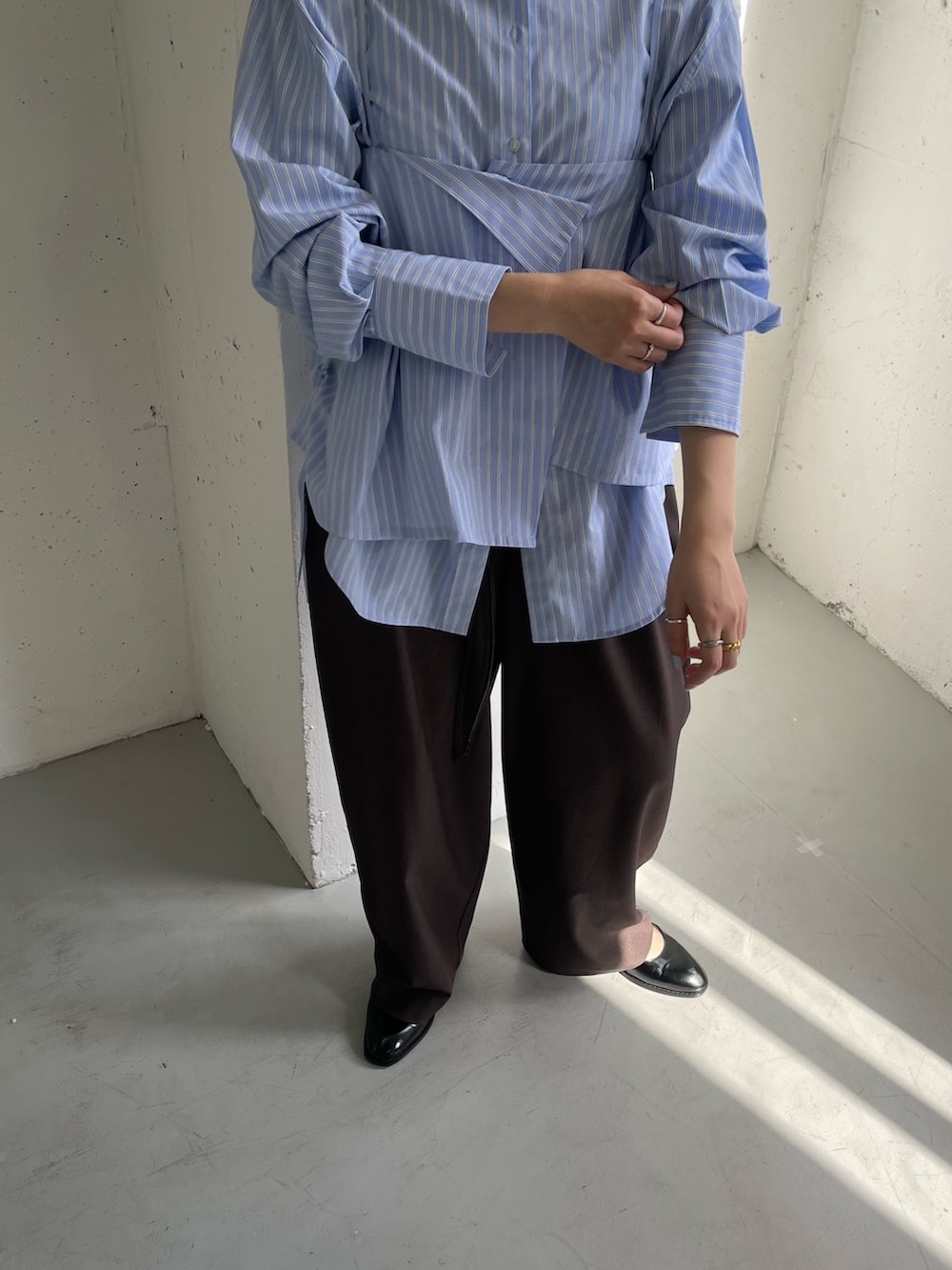 ニュアンスカラーのパンツと合わせると春っぽくなるのでおすすめ!