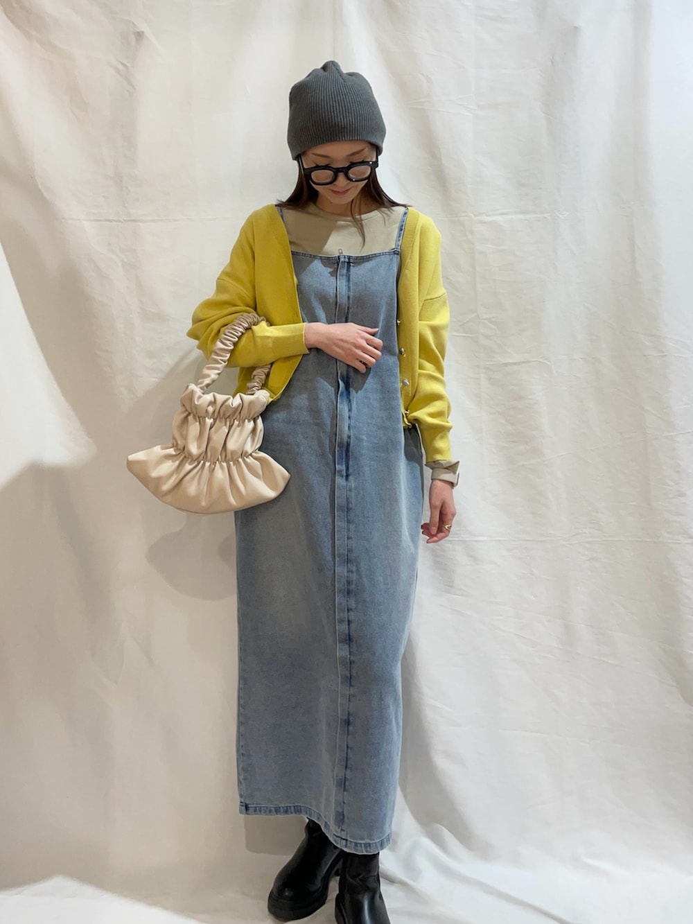 キレイめにもカジュアルにも着られるカーディガン◎イエローがアイキャッチになってかわいい!