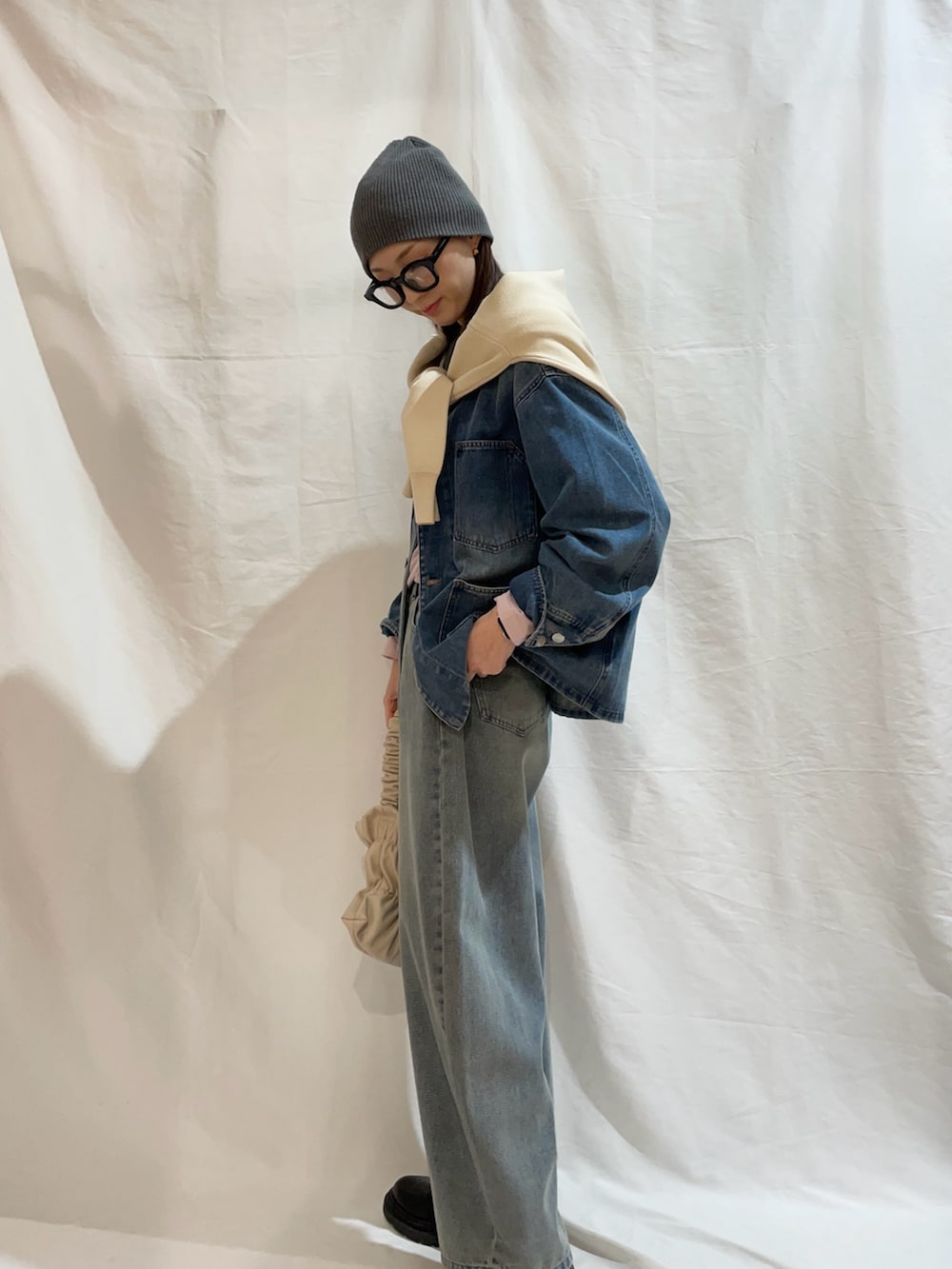 オーバーサイズなので今の時期だと厚めのニットと合わせて着用してもごわつきなく着て頂けます◎