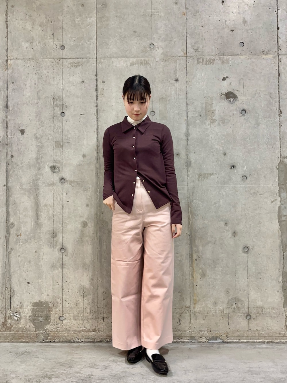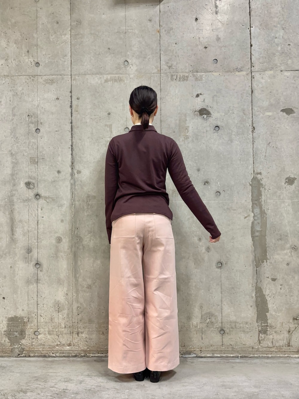 ワイドパンツはしっかりとした生地で、165cmの身長でもMサイズで丈感が🙆‍♀️
