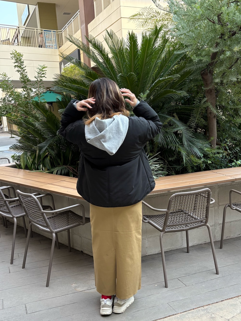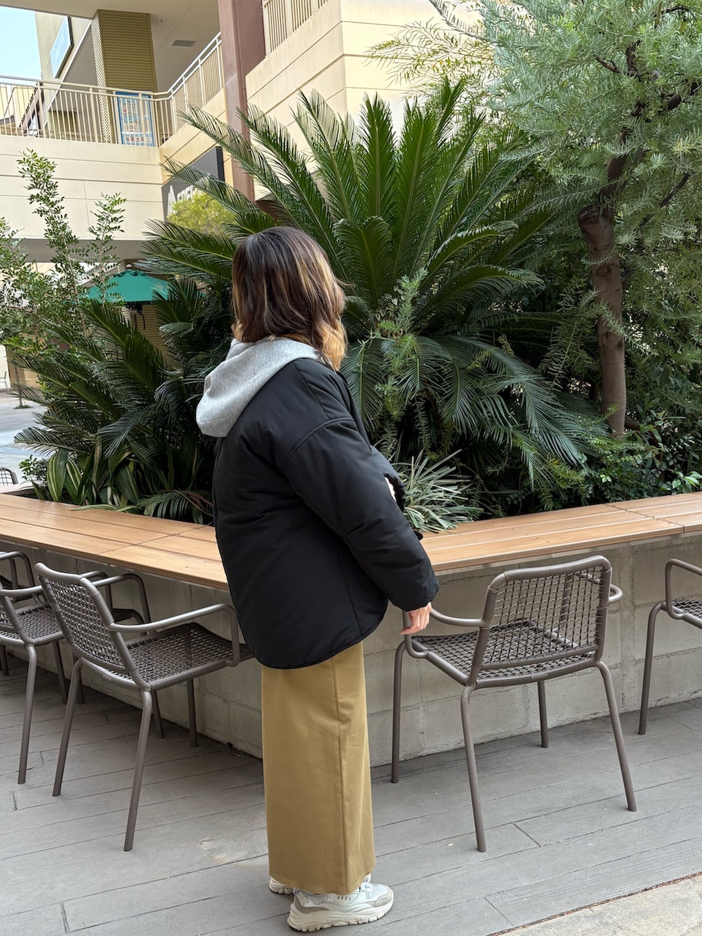 ↪︎裾に向かって緩やかに広がるテントシルエットの中綿ブルゾン☺️
