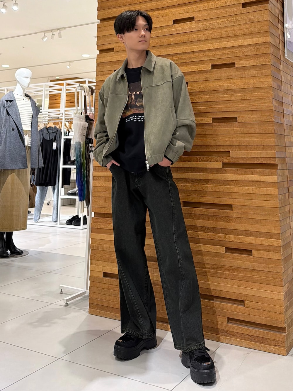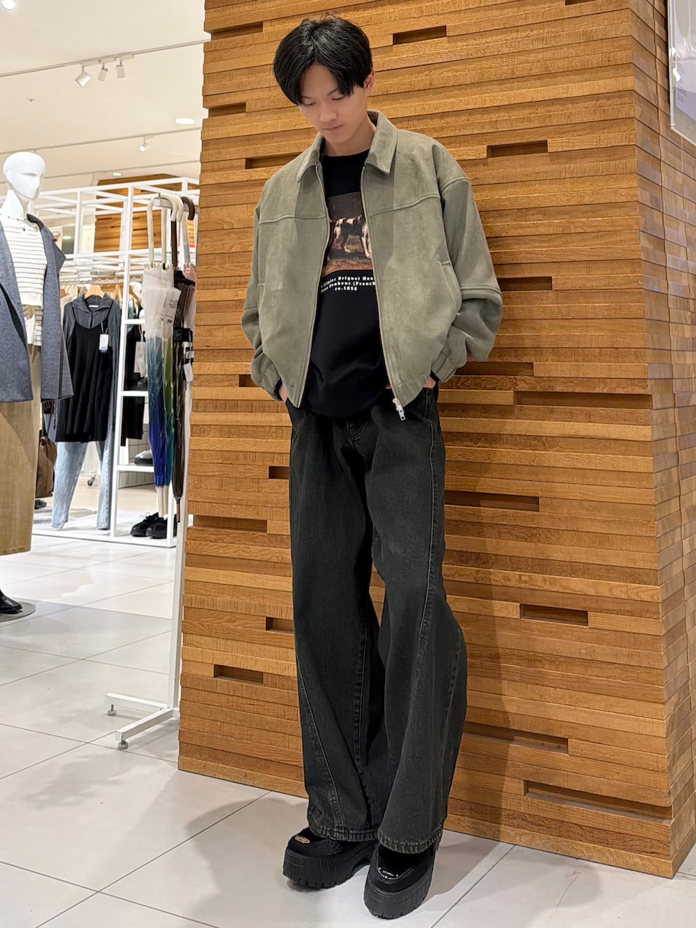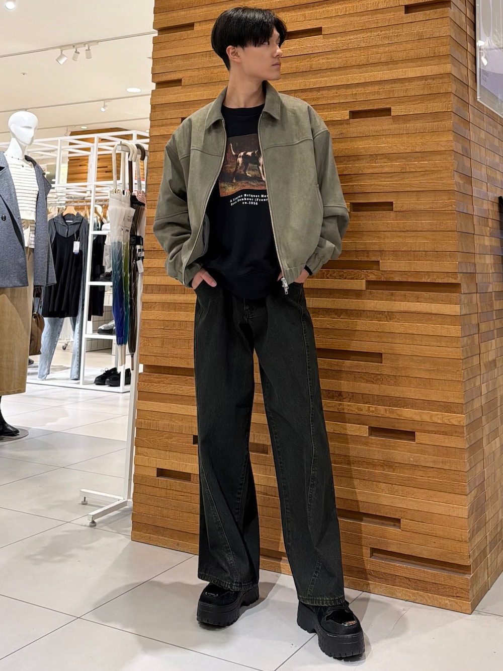 色味はブラックのパンツですが、若干緑みが入ってるので全身はグリーンぽさで統一してます!(詳しくは6枚目参照してください👀)