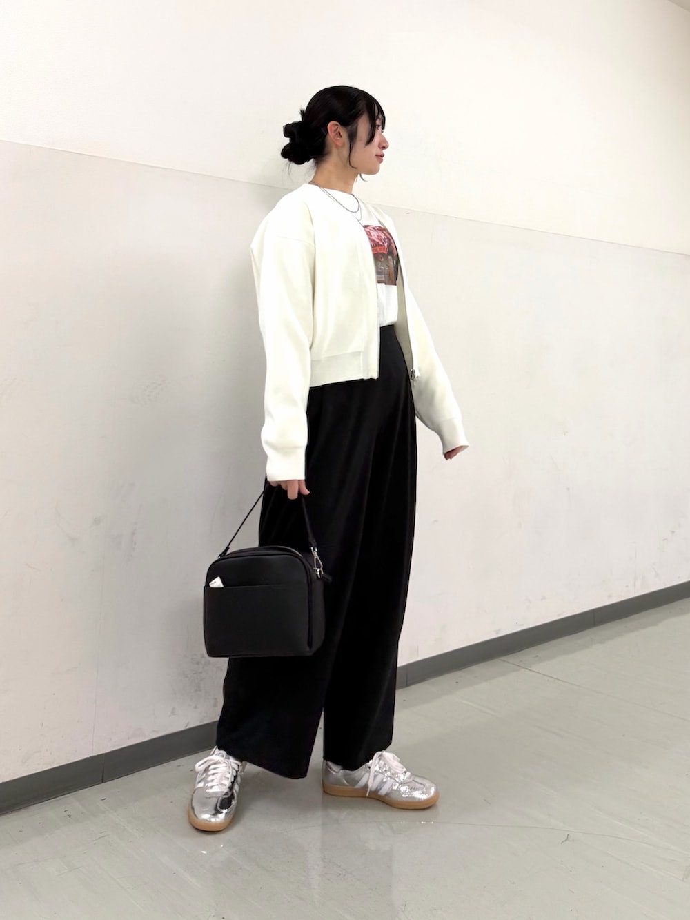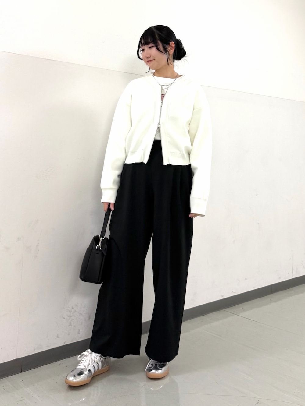 カーディガンは、Vネックになっており顔周りをスッキリさせてくれます!