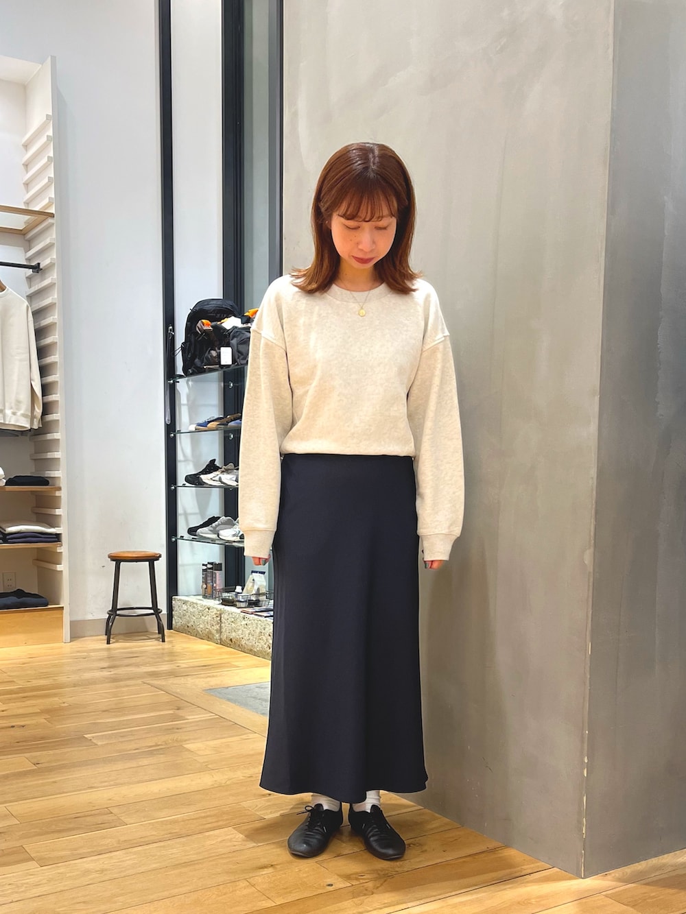 ラフなスウェットを合わせて
