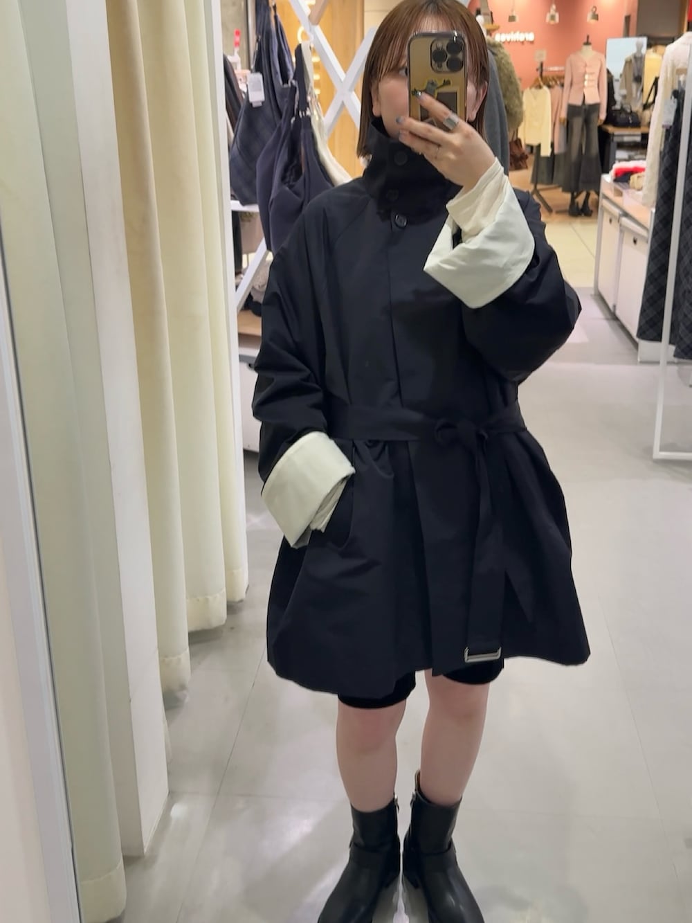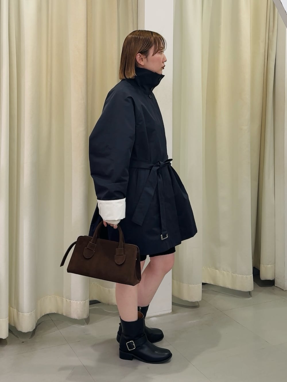 シルエットのかわいいミドルコート。