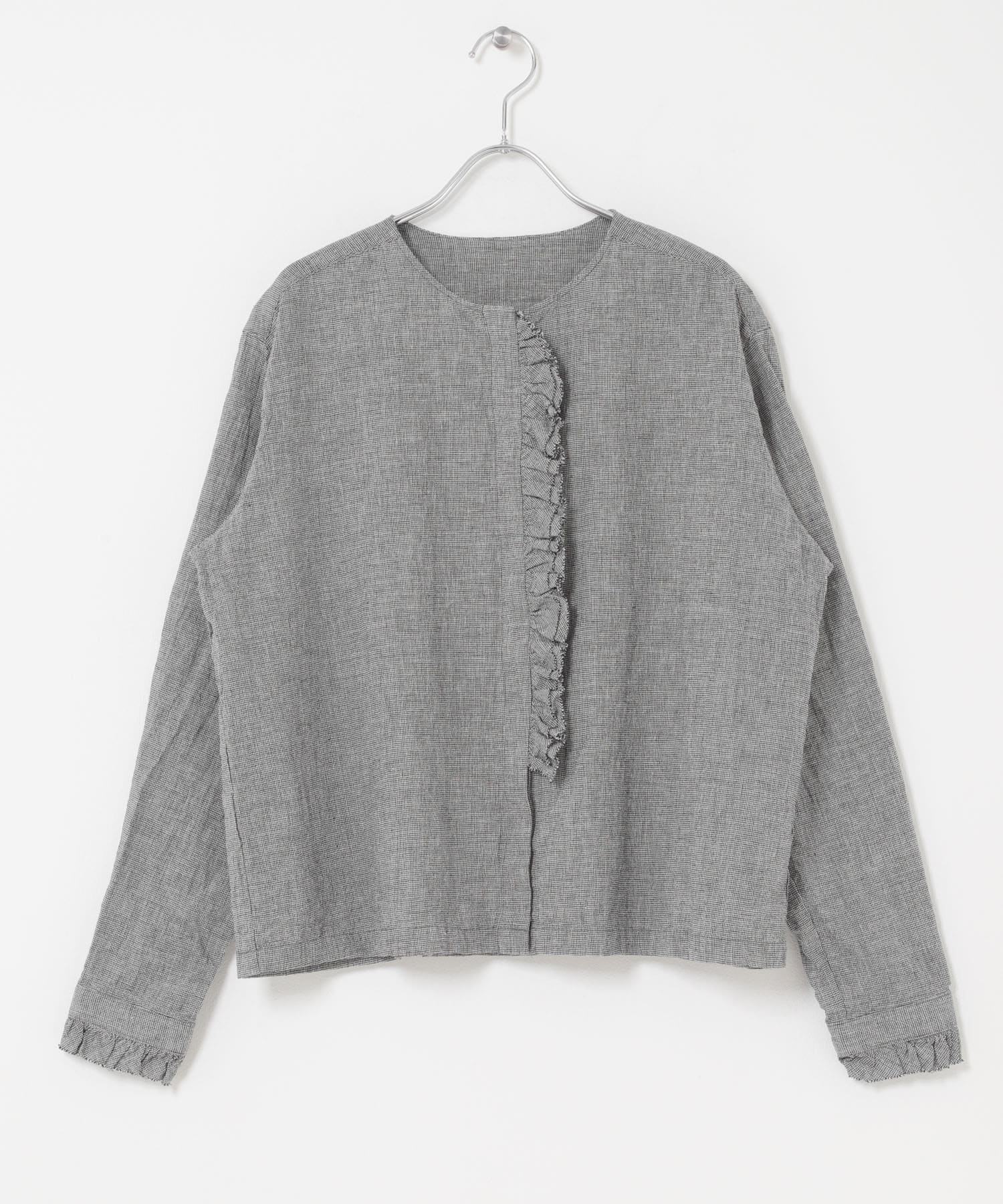 コットンリネンフリルブラウス