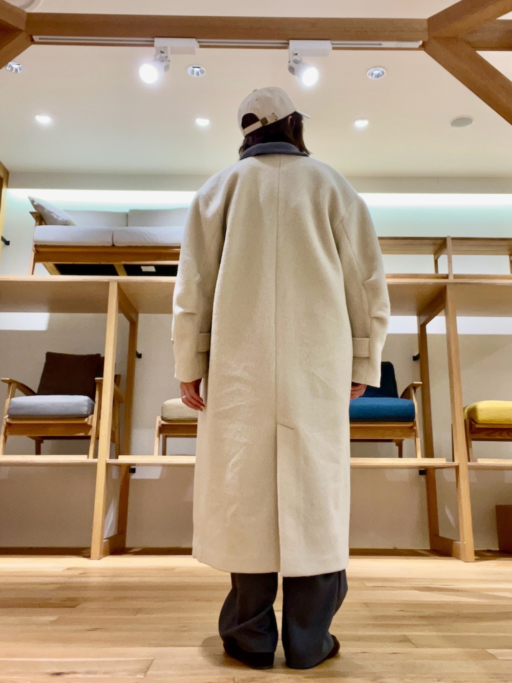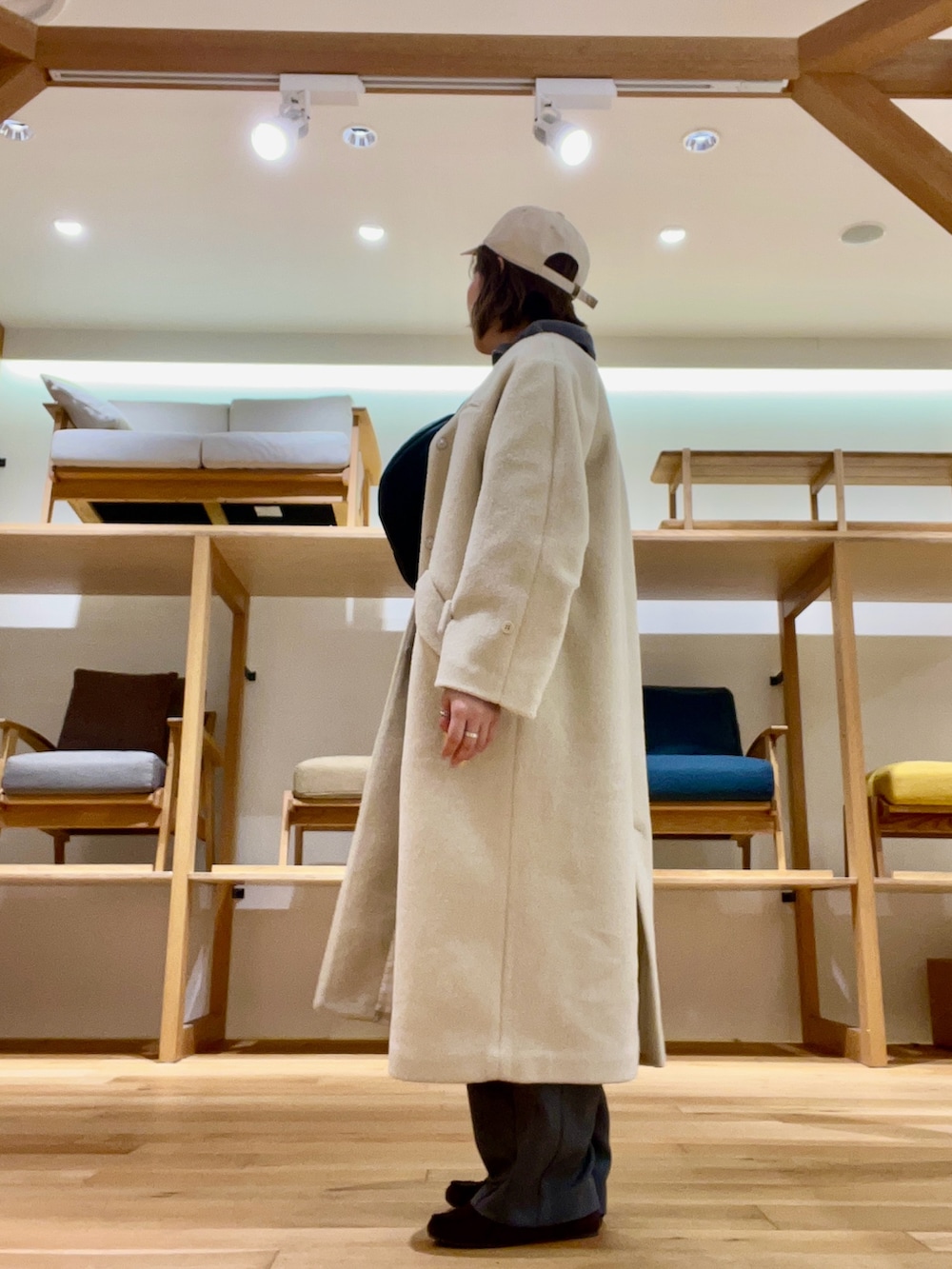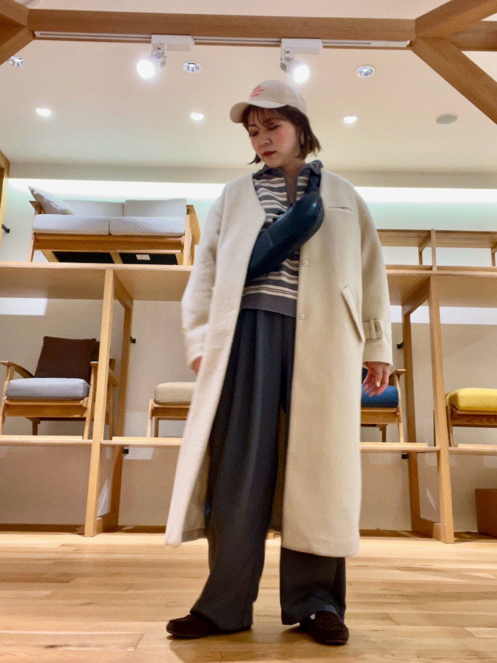 ノーカラーコートはボリューム感が可愛くVネックなのでスッキリと着用かできます‼︎