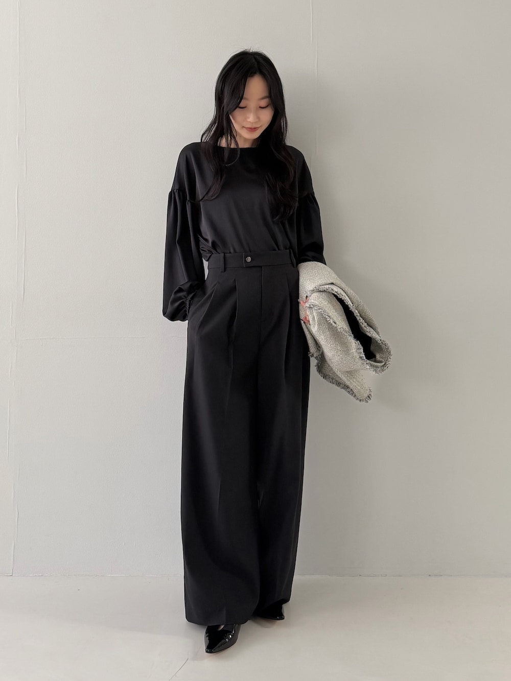 ROSSOハンマーサテンギャザーブラウス- カラー: