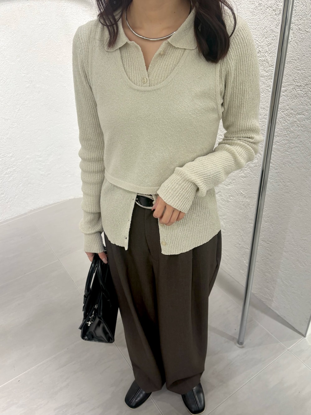 ブークレ素材を使用したレイヤードニットシャツ 🌿