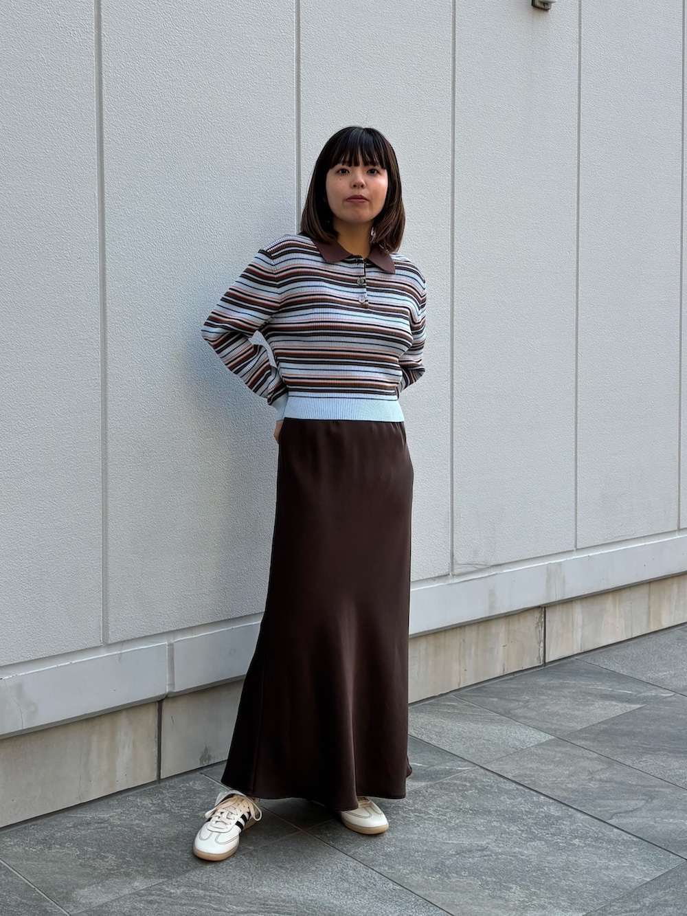 女性らしい素材感のスカートと合わせて履くのがおすすめです💁♀️