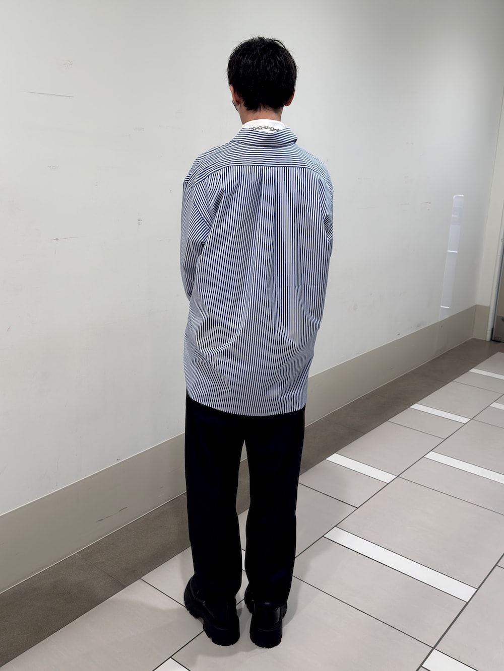 アウターにはエステネージュ LS シャツを合わせたコーディネートです。