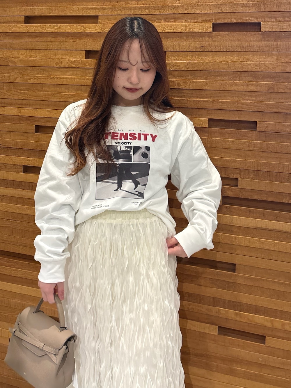 今回は人気の商品フリルニットのブラウンを着てみました