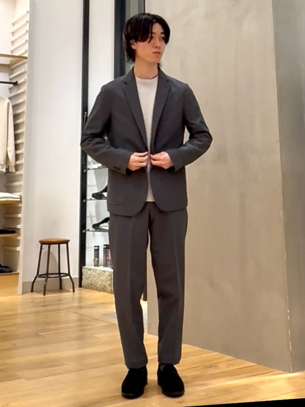 明るめのインナー合わせで爽やかにまとめました。