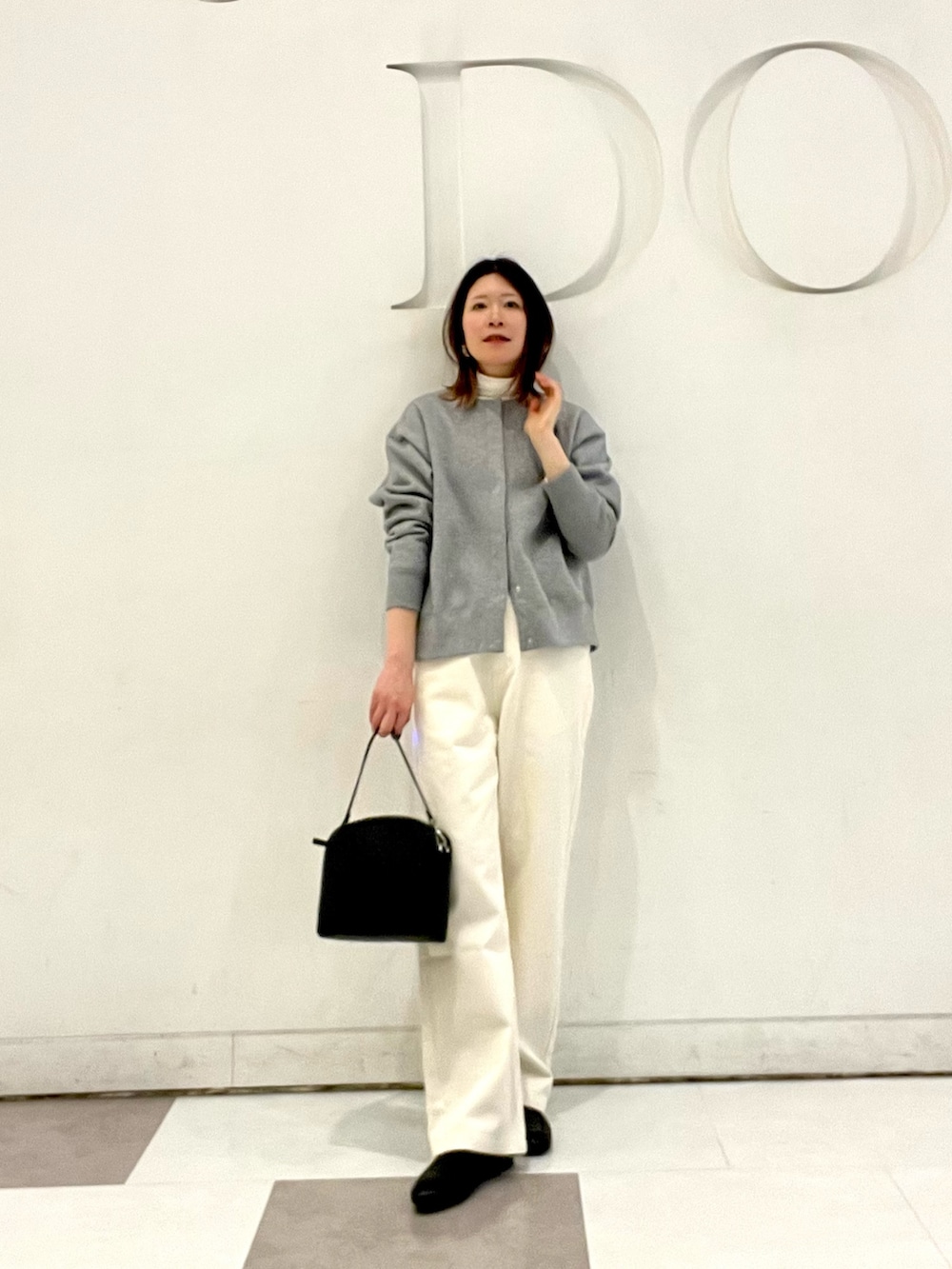 トップスは裏起毛のスウェットカーディガンです!丸みのあるシルエットが可愛く、羽織りはもちろん、前を閉めて着るのもおすすめ◎肌寒さの残る春先まで出番のあるアイテムです☘️