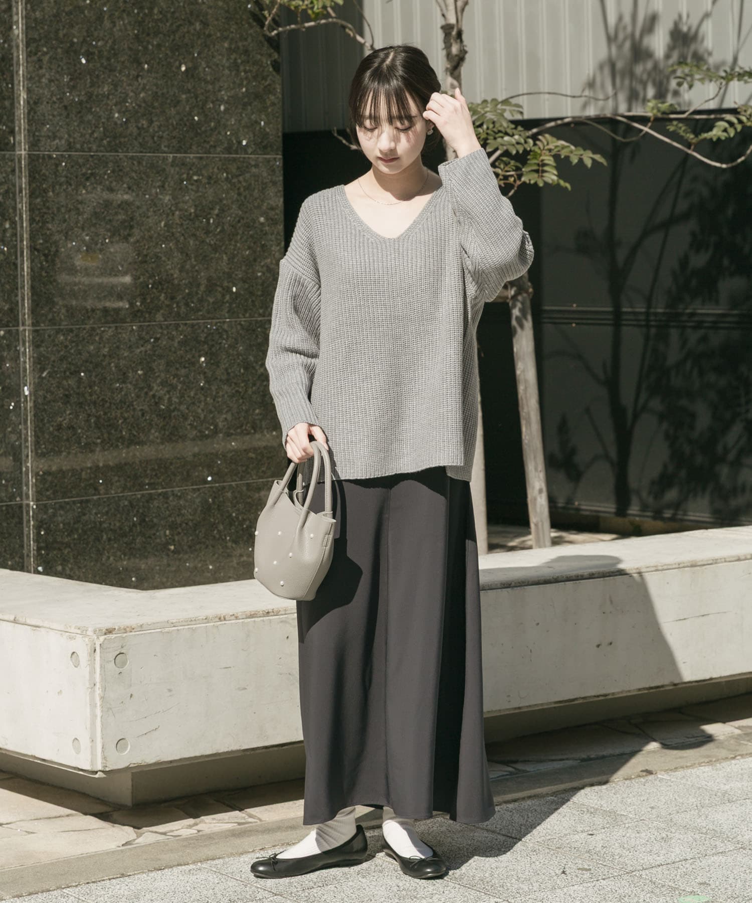 首周りすっきり開いたVネックなので気になる方はTシャツやブラウスをレイヤードしてみてください!