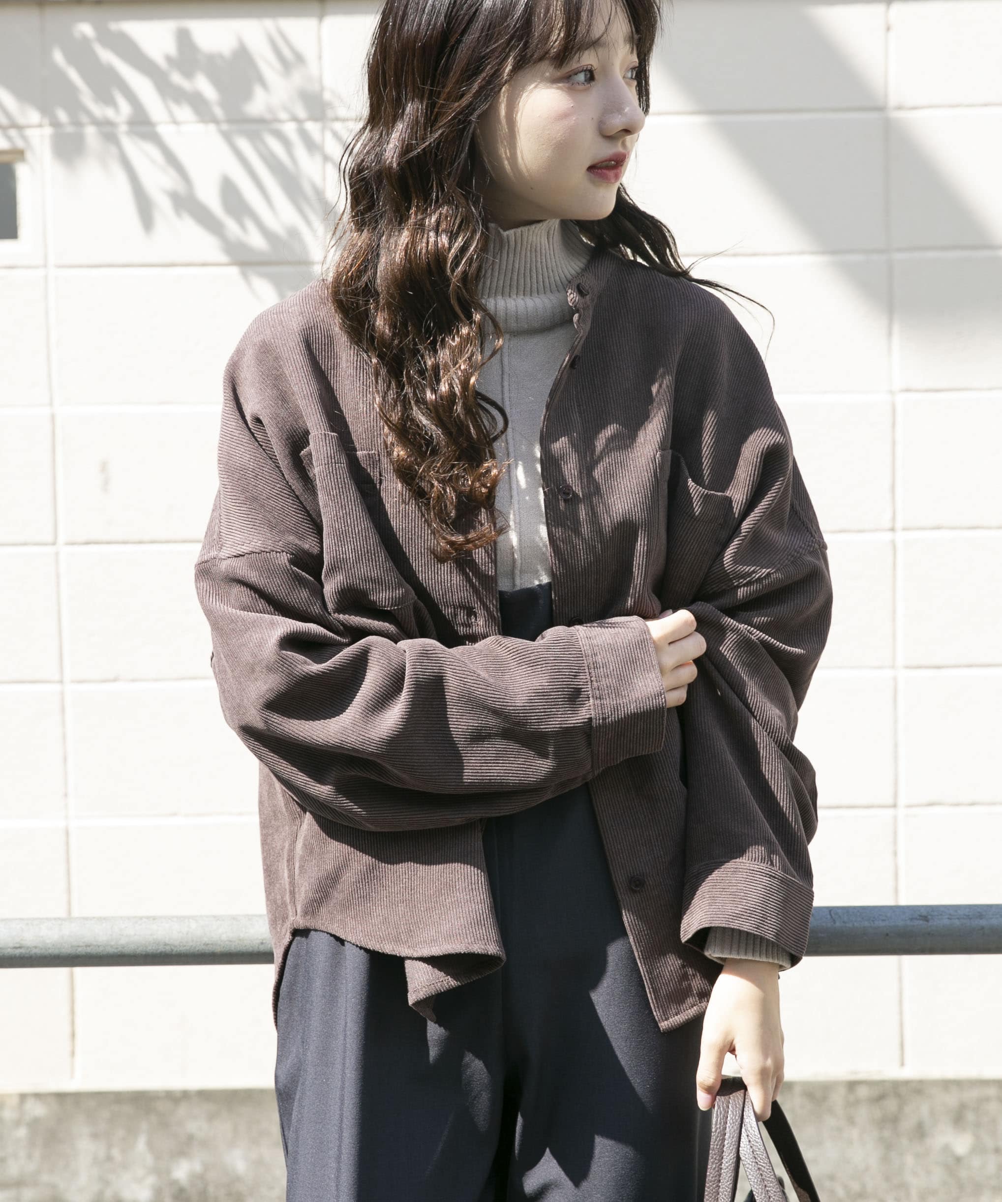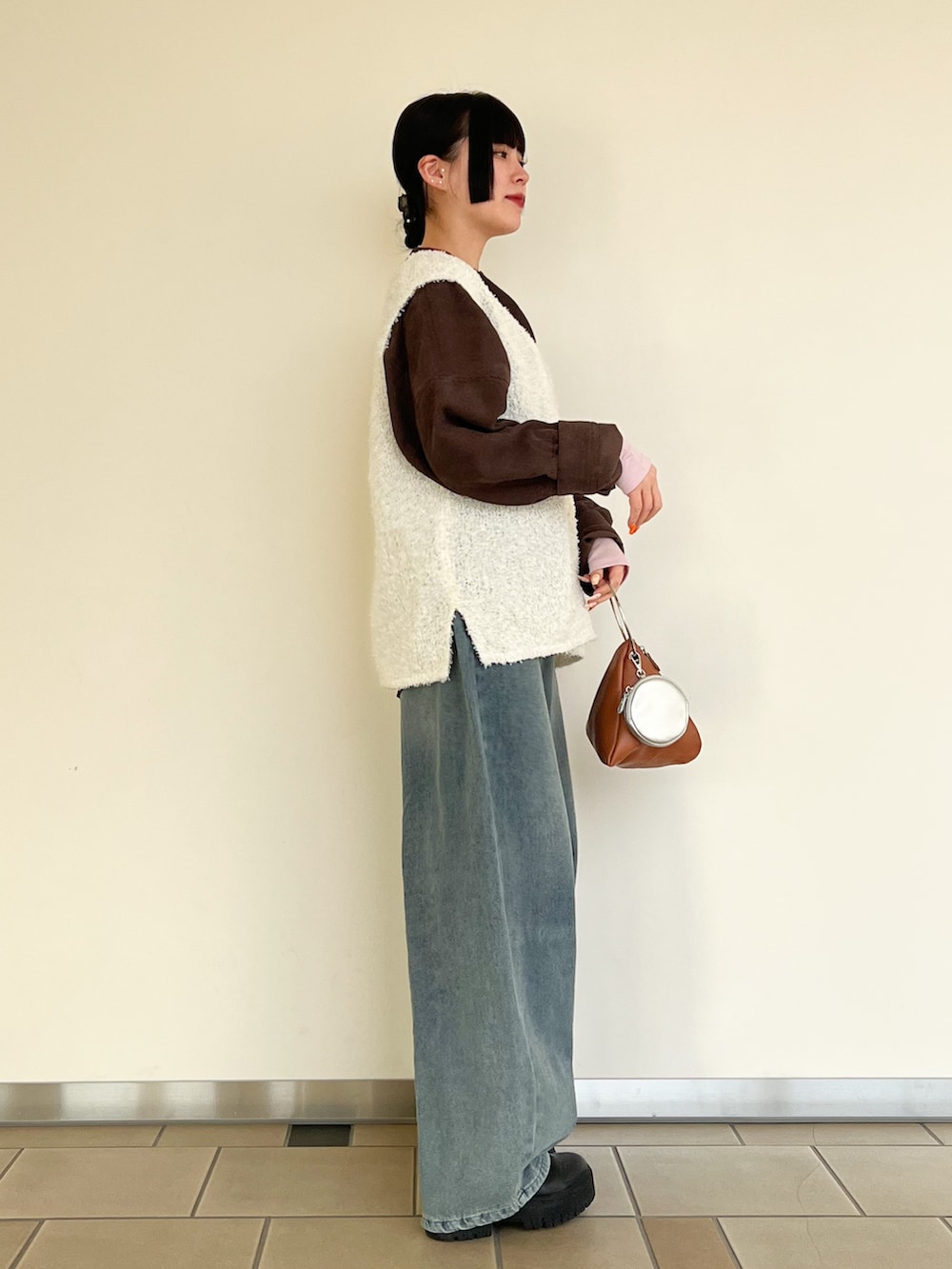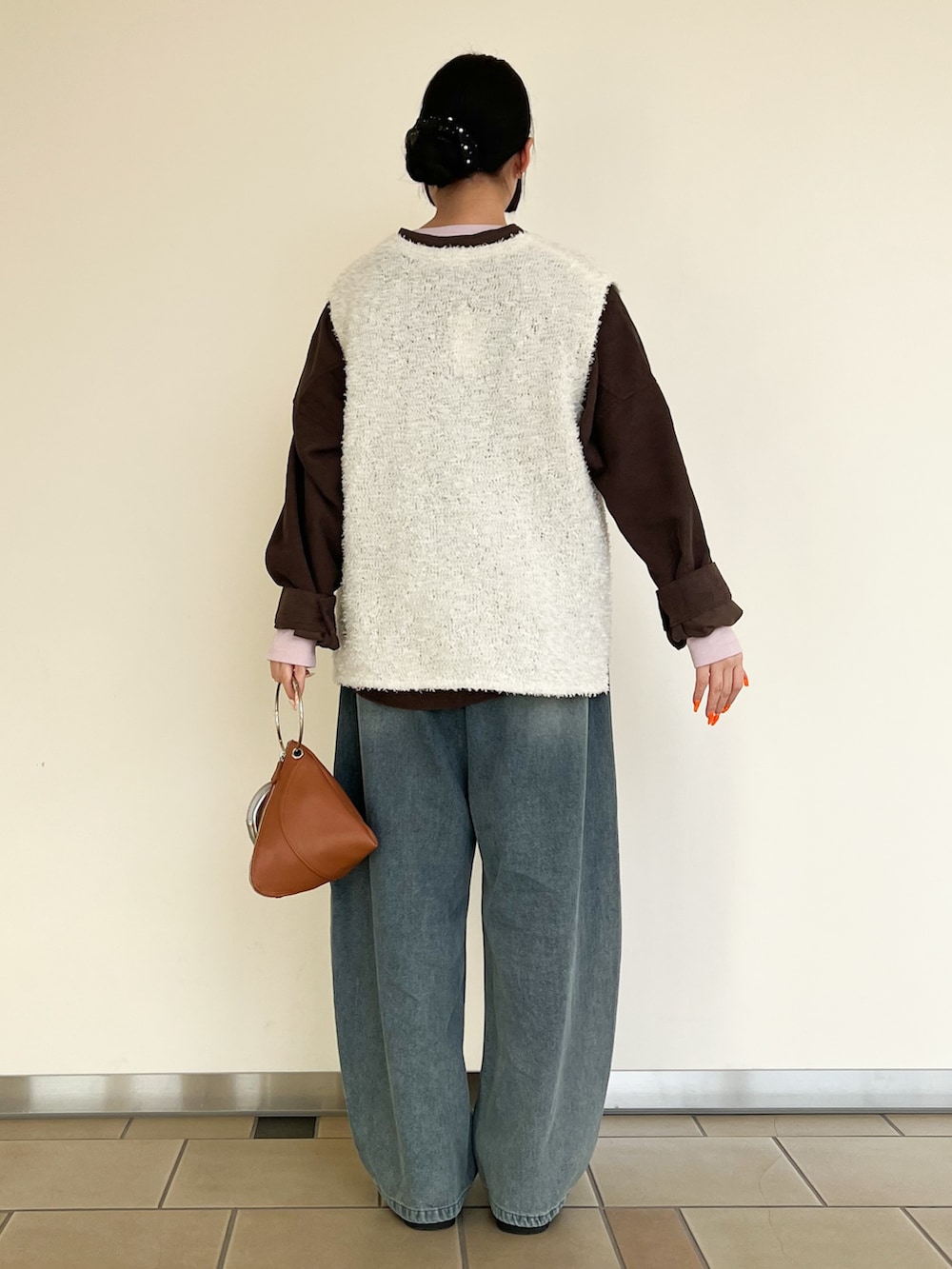 ノーカラーなので首元は開けてロンTをチラ見せさせました👀♡