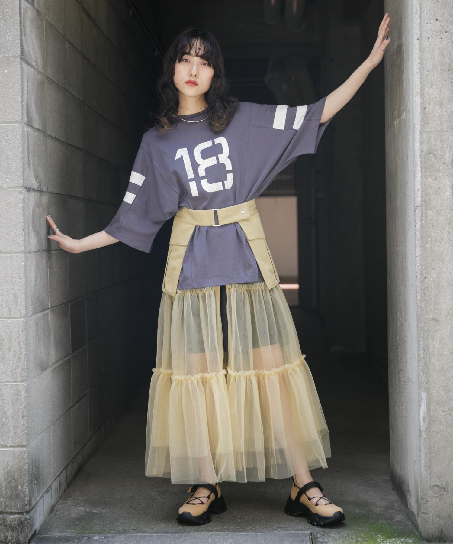 メンズアイテムとチュールで甘辛MIXコーデにしました✨