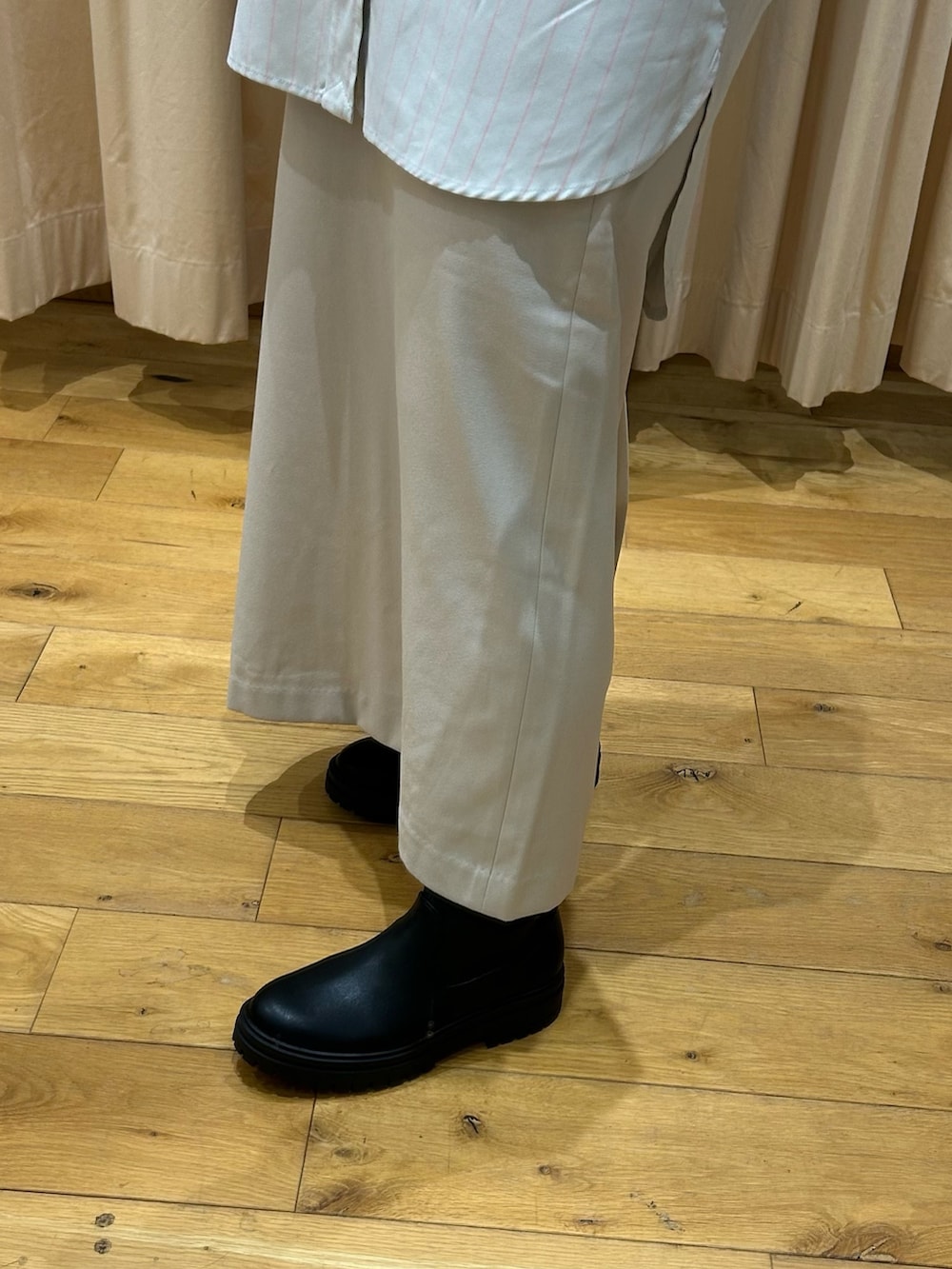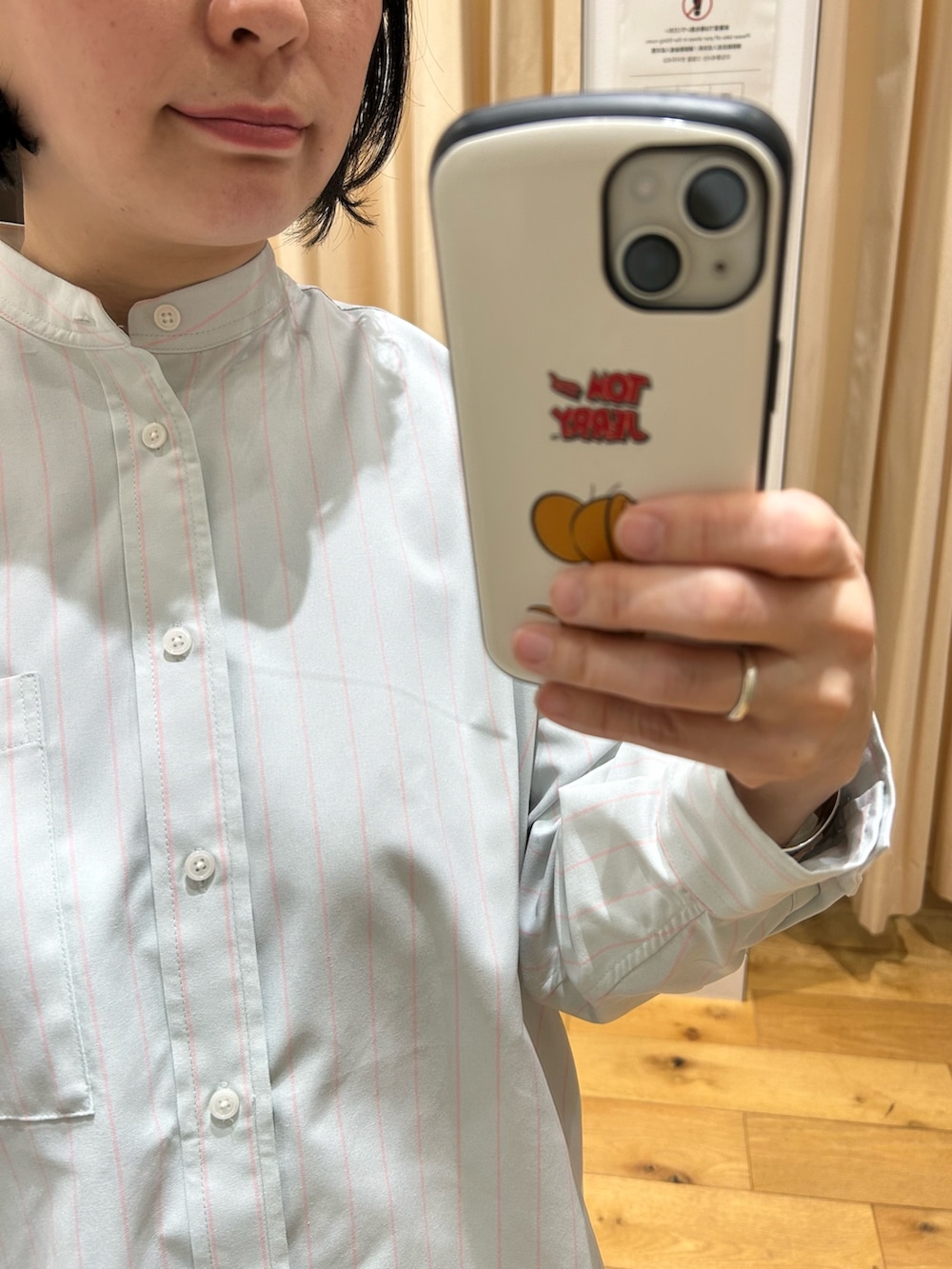 シャツは薄いピンクのストライプ柄で可愛い(^-^)