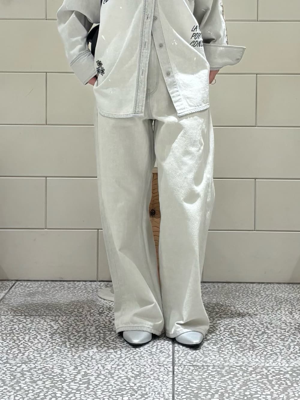 シャツとセットアップの別注デニムパンツです。ゆったりとしたワイドなシルエットがこなれ感◎刺繍入りver.も展開あります。