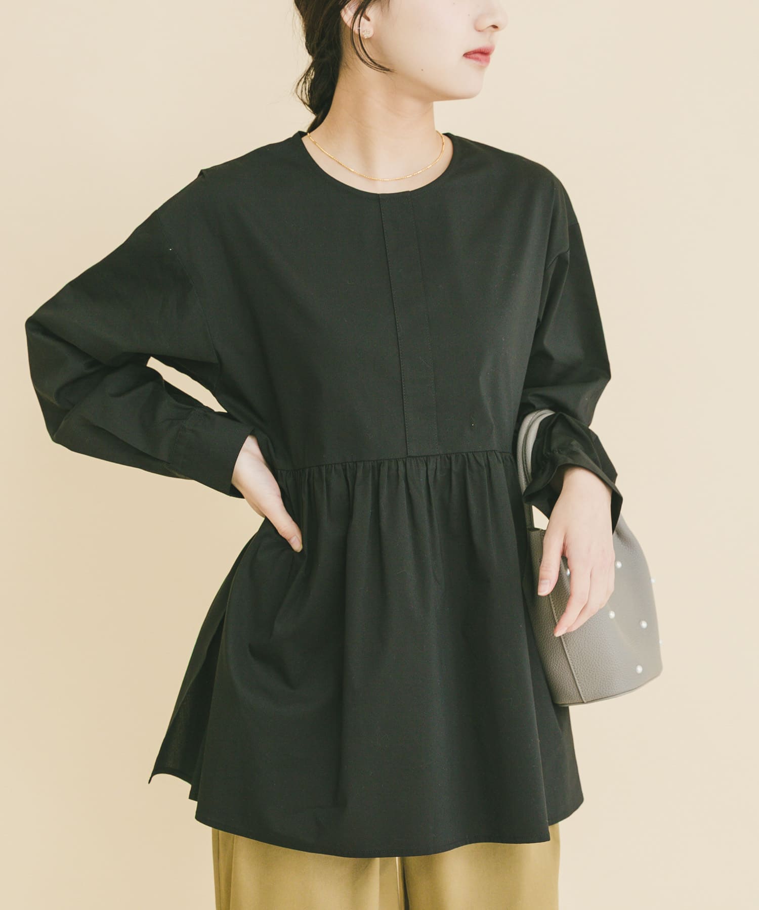 『UVカット/吸水速乾』ギャザーペプラムブラウス(楽着シリーズ)