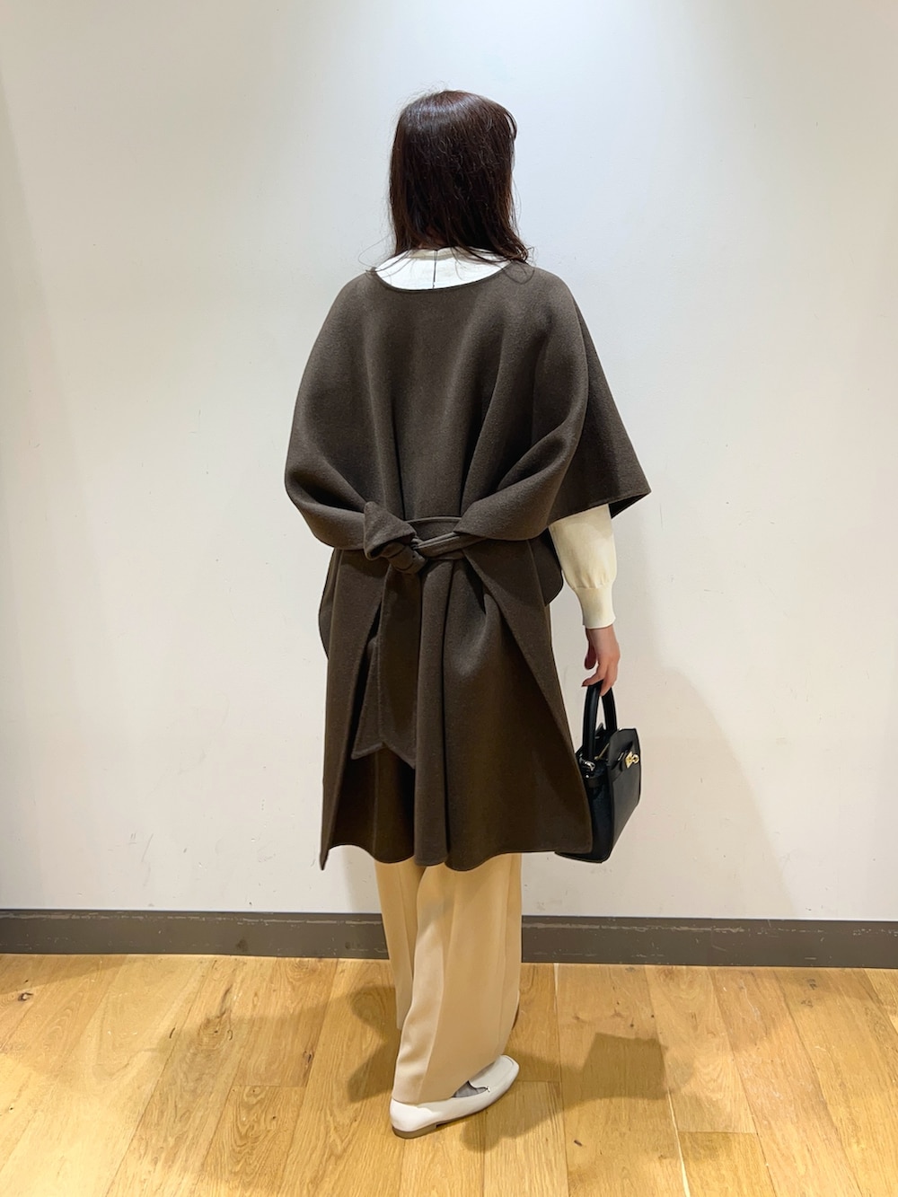 エレガント見えするポンチョ型👀カーキカラーでイエベ大優勝、お洒落見え!ウエストベルトマークは後ろで結ぶとすっきりガウンチックに羽織れます☝🏻
