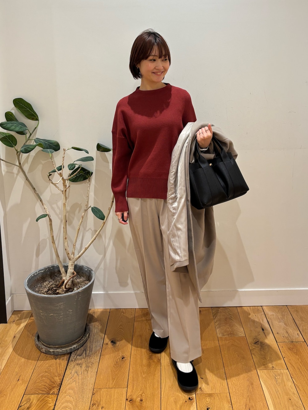 深みのある赤なので、派手すぎない印象で着ていただけます◎