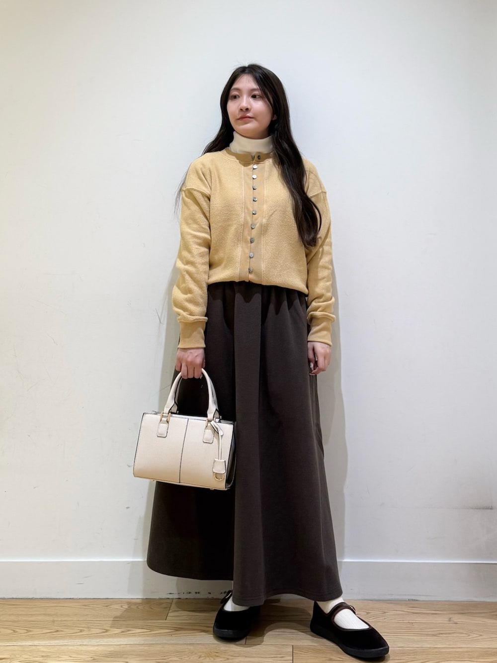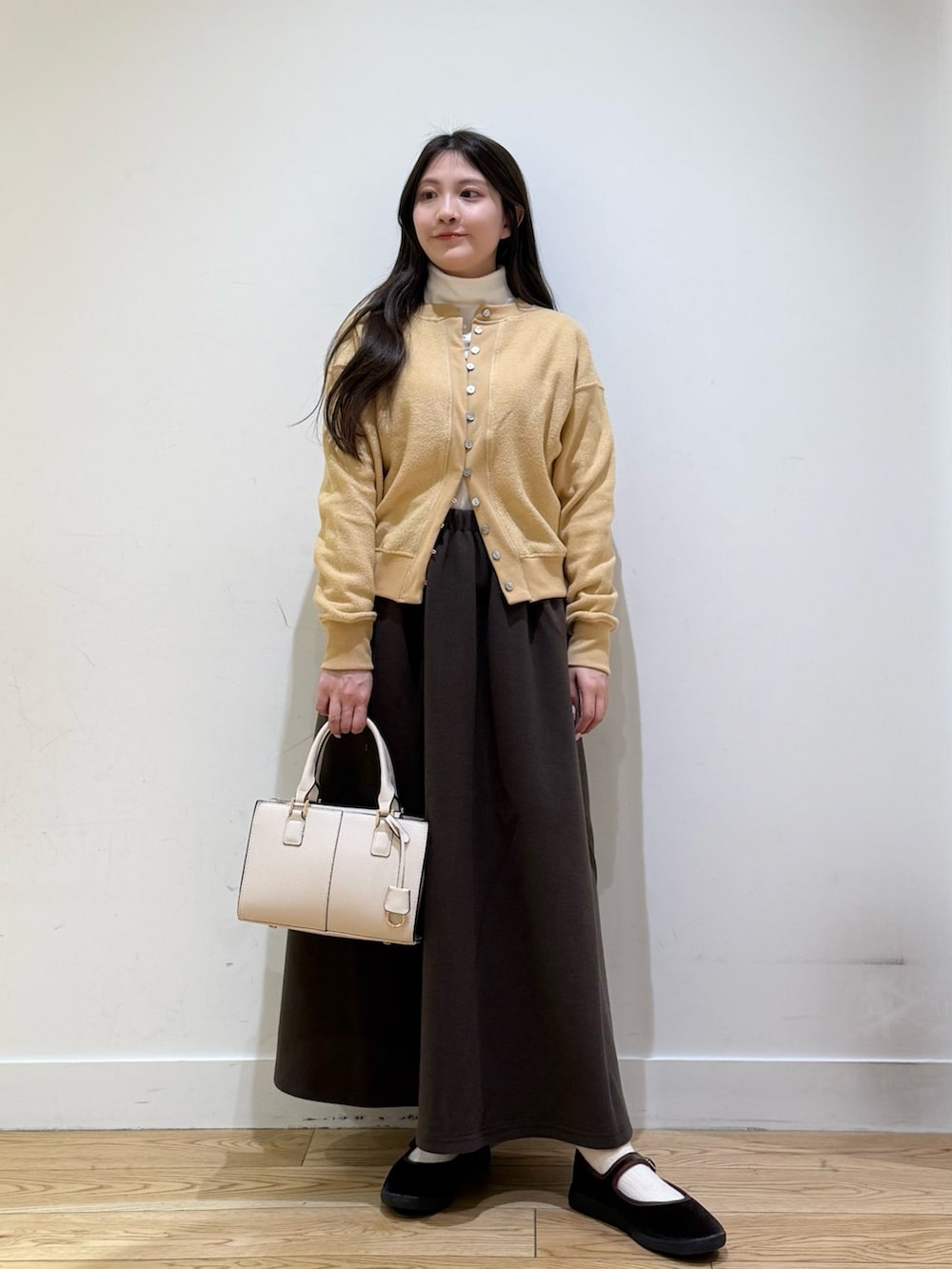 カットブークレーショートカーディガンは、コンパクトめなサイズで着膨れしないのでおすすめです!