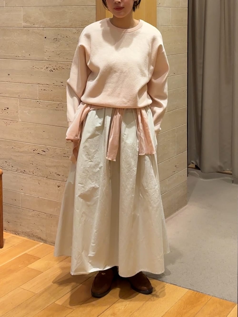 シンプルなトップスとスカートで合わせる時は腰にカーディガンを巻いてアクセントに( ◠‿◠ )