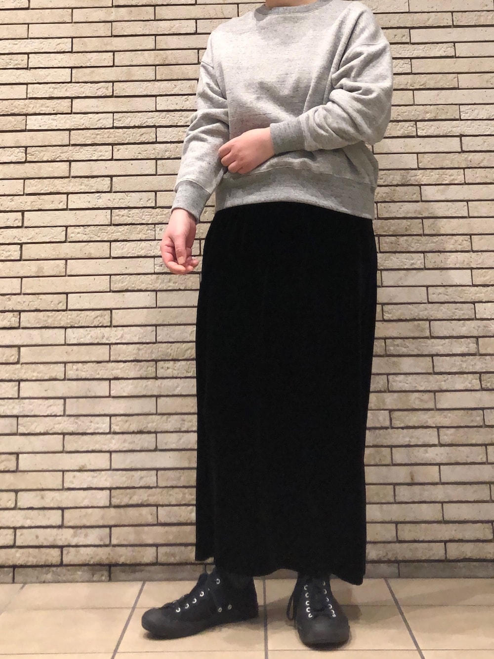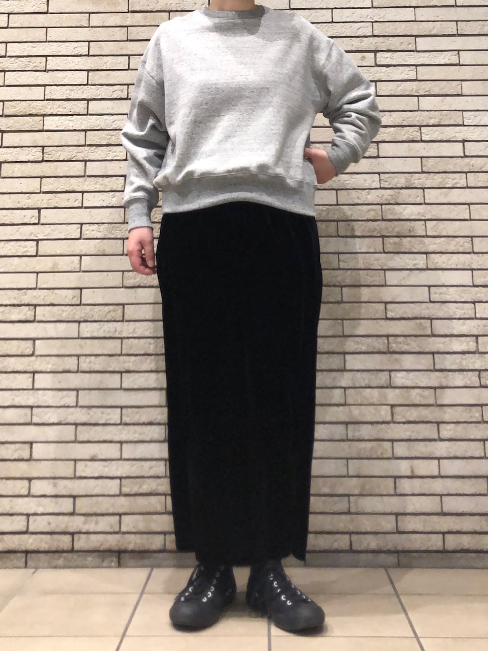 スウェットは程よいサイズ感がスタイリングしやすいです。春先まで活躍する1着です◎