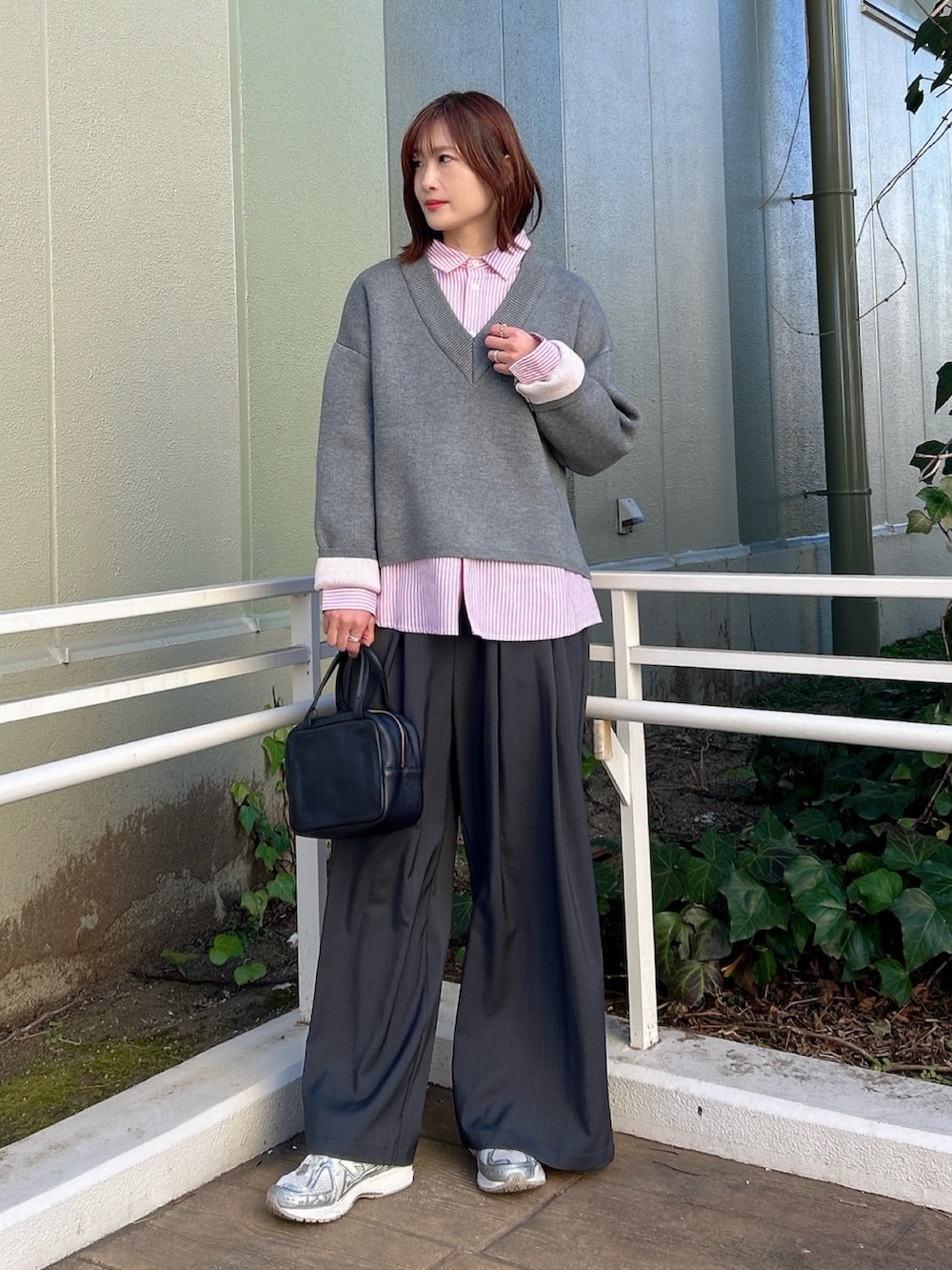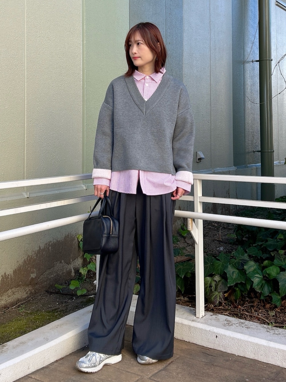 Vネックがやや深めなのでインナーを着てレイヤードするのがオススメです👍