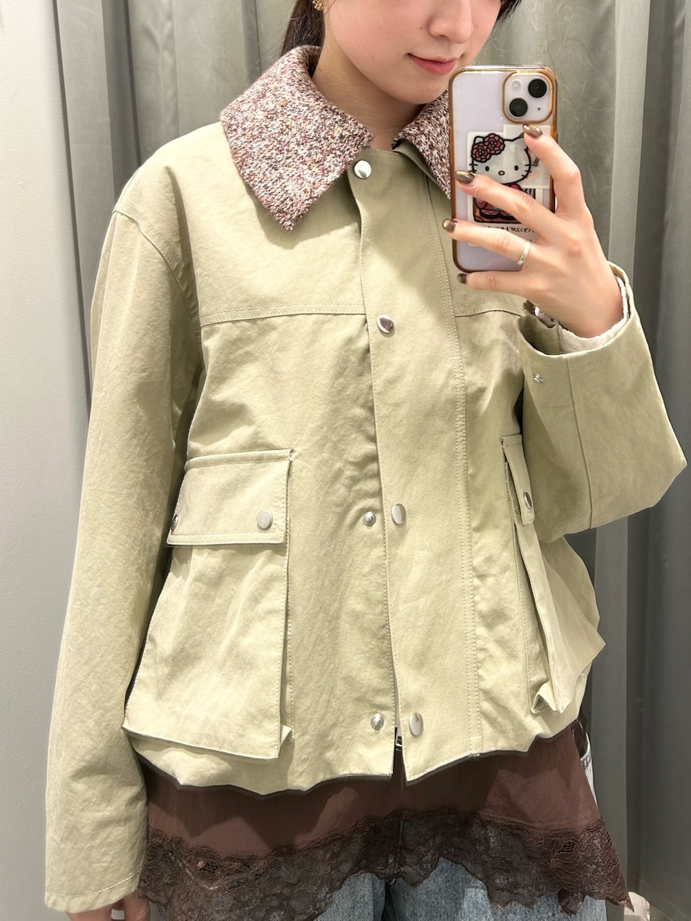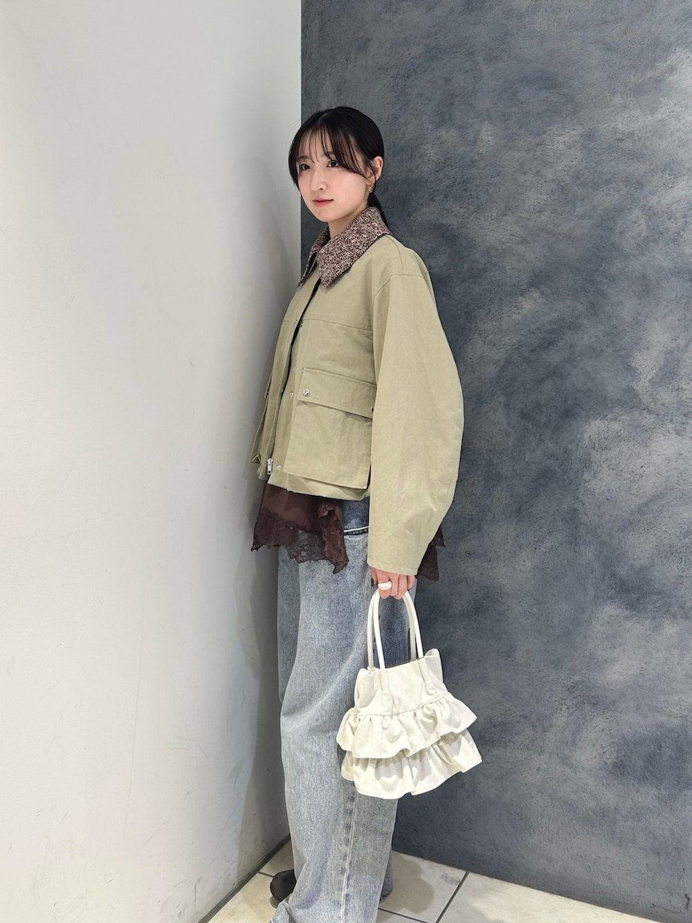 表情のある襟と、インナーのレースをさりげなく覗かせて奥行きをプラスしました☑️