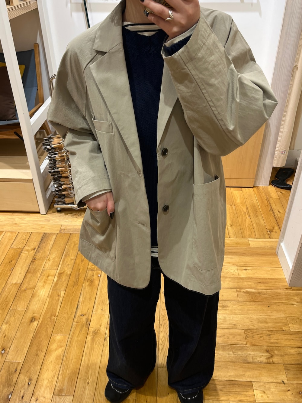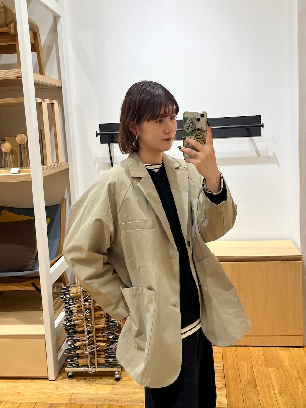 綿とポリエステルなので、かっちりとしすぎず、気楽に着やすいジャケットです◎