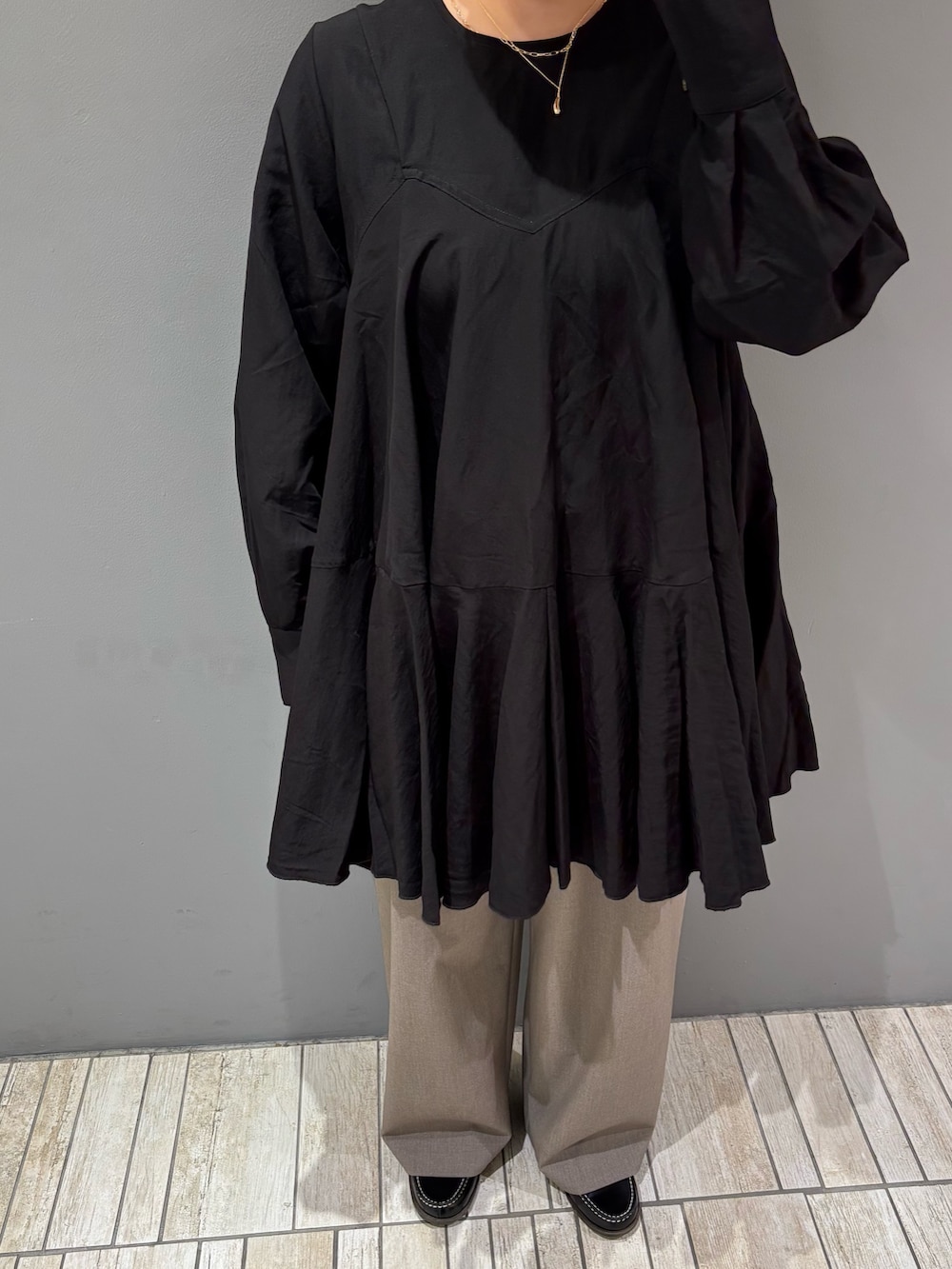 着てみた感じ、ウエスト位置で切り替えがないので骨格ストレートの私は横から見たときの身体の厚みが気になるかなといった印象でした(;_;)ですが、上からニットやスウェットなどレイヤードしてもらえば厚みを抑えてくれる&レイヤードコーデもできるので問題なしです👌🏻