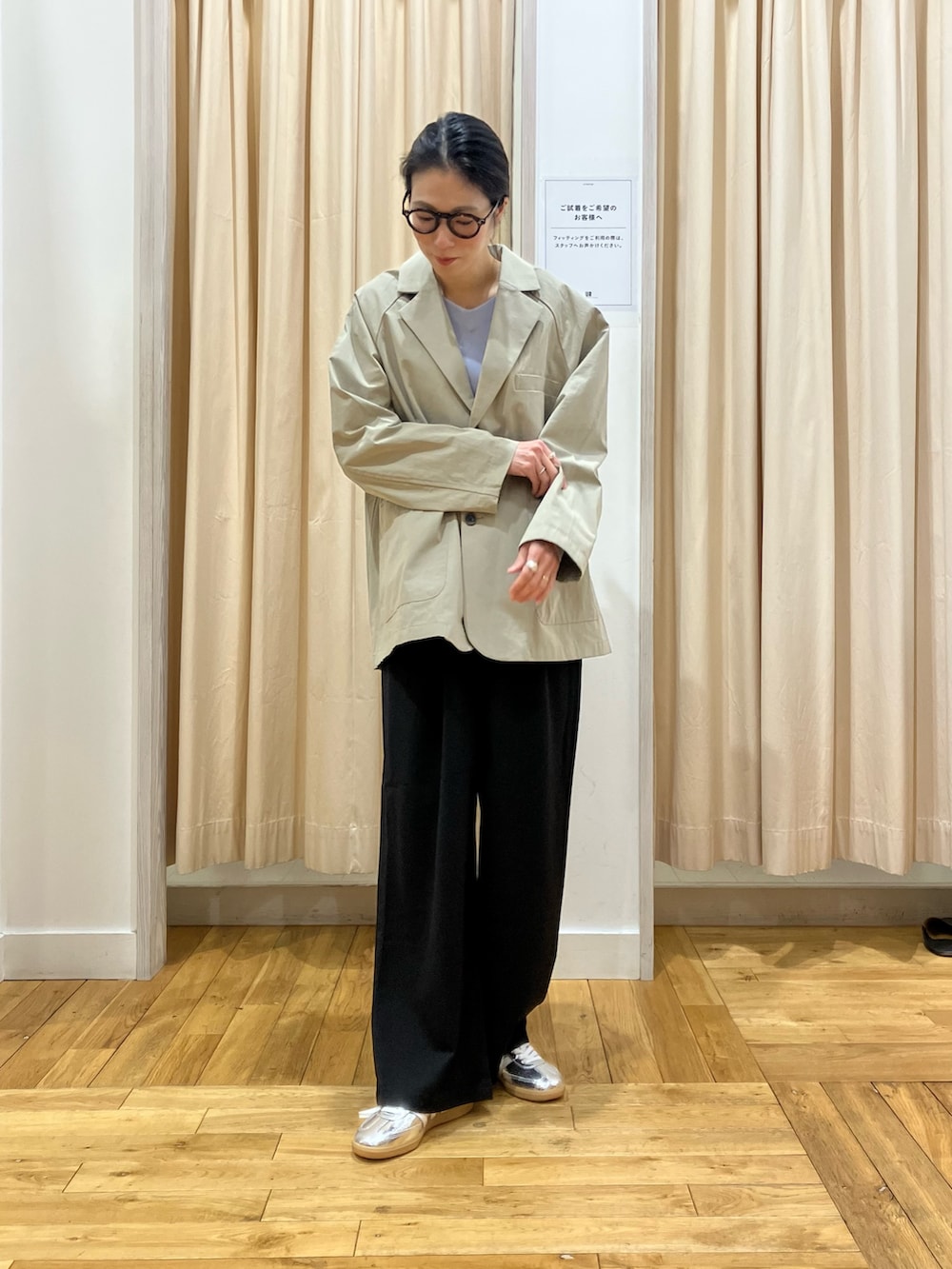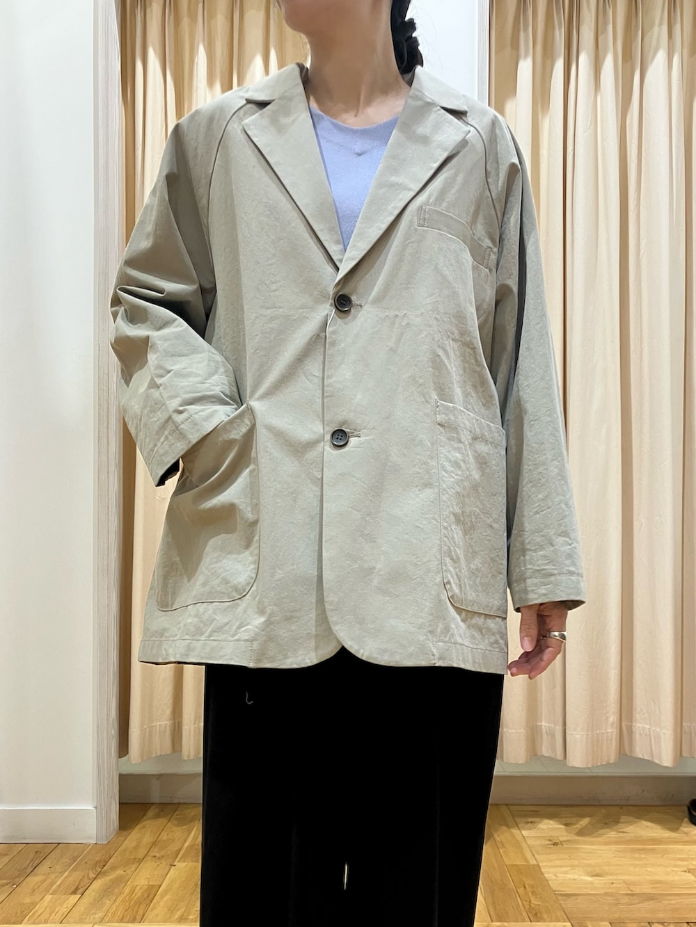 FORK&SPOONのジャケットはその名の通りビッグサイズ。パリッと張りのある素材で、アウター感覚で着られるジャケットです!袖も長めですが、ラフに折ることもできるので、体型問わずに着ていただけますよ◎