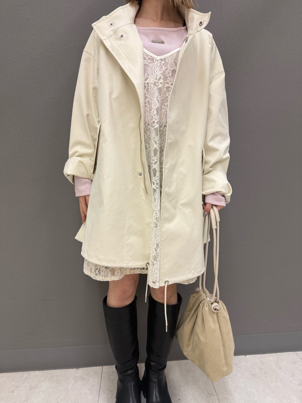 中はレースキャミでアウターから少し見える感じが可愛いです☝🏻