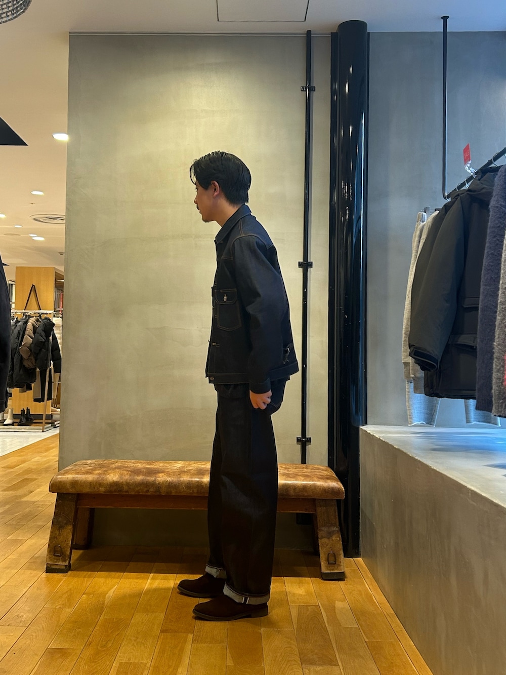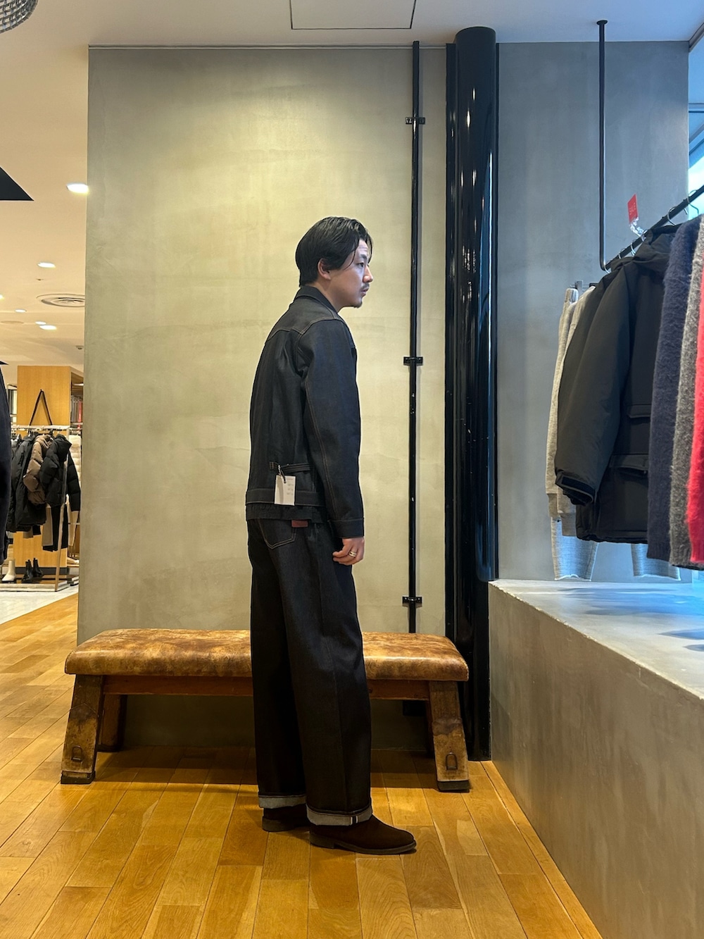 shiotaスーピマdenimセットアップを着用しています。