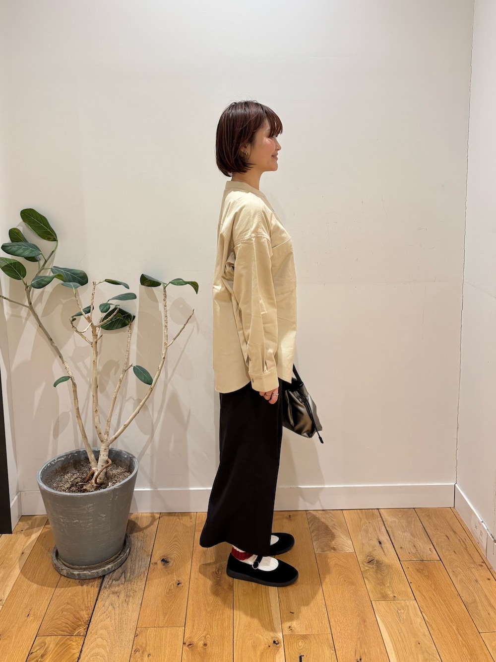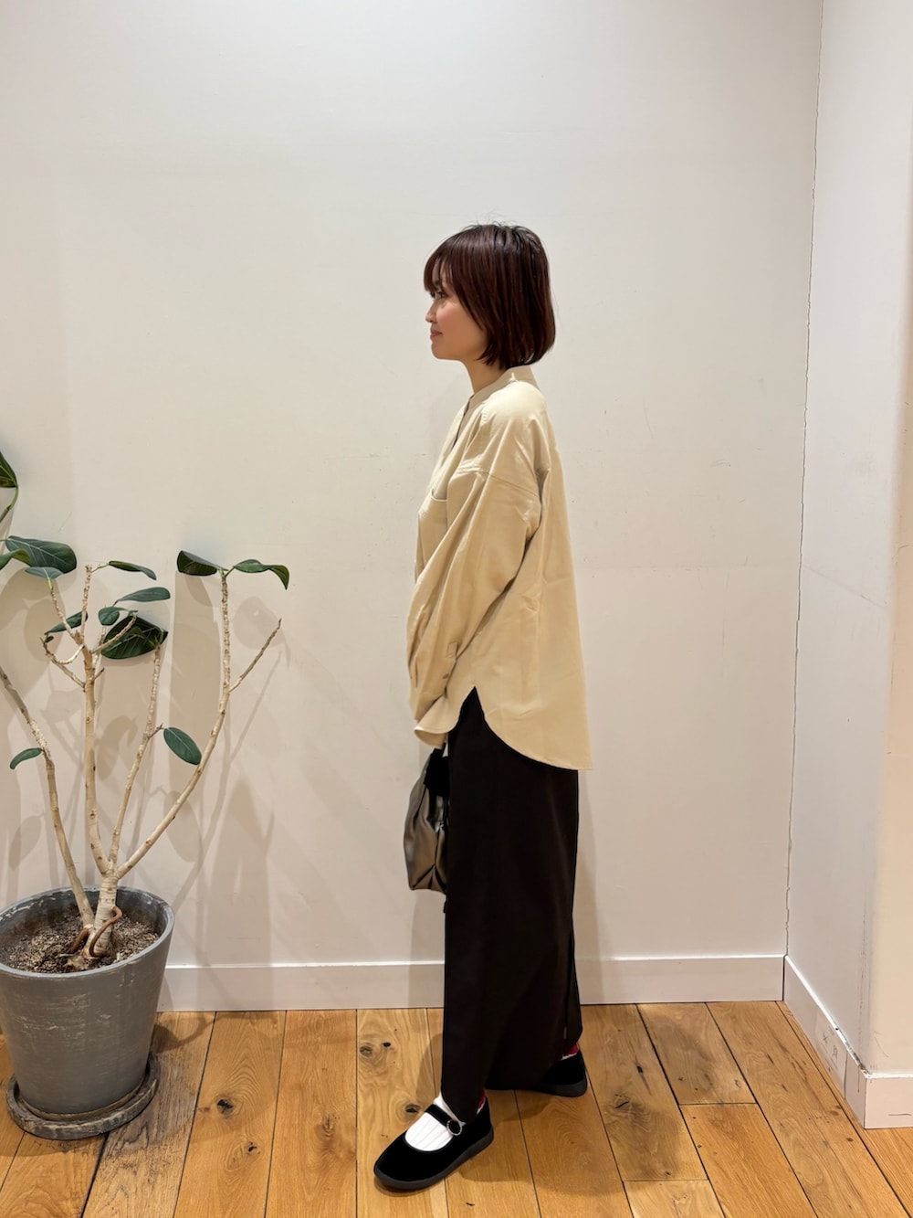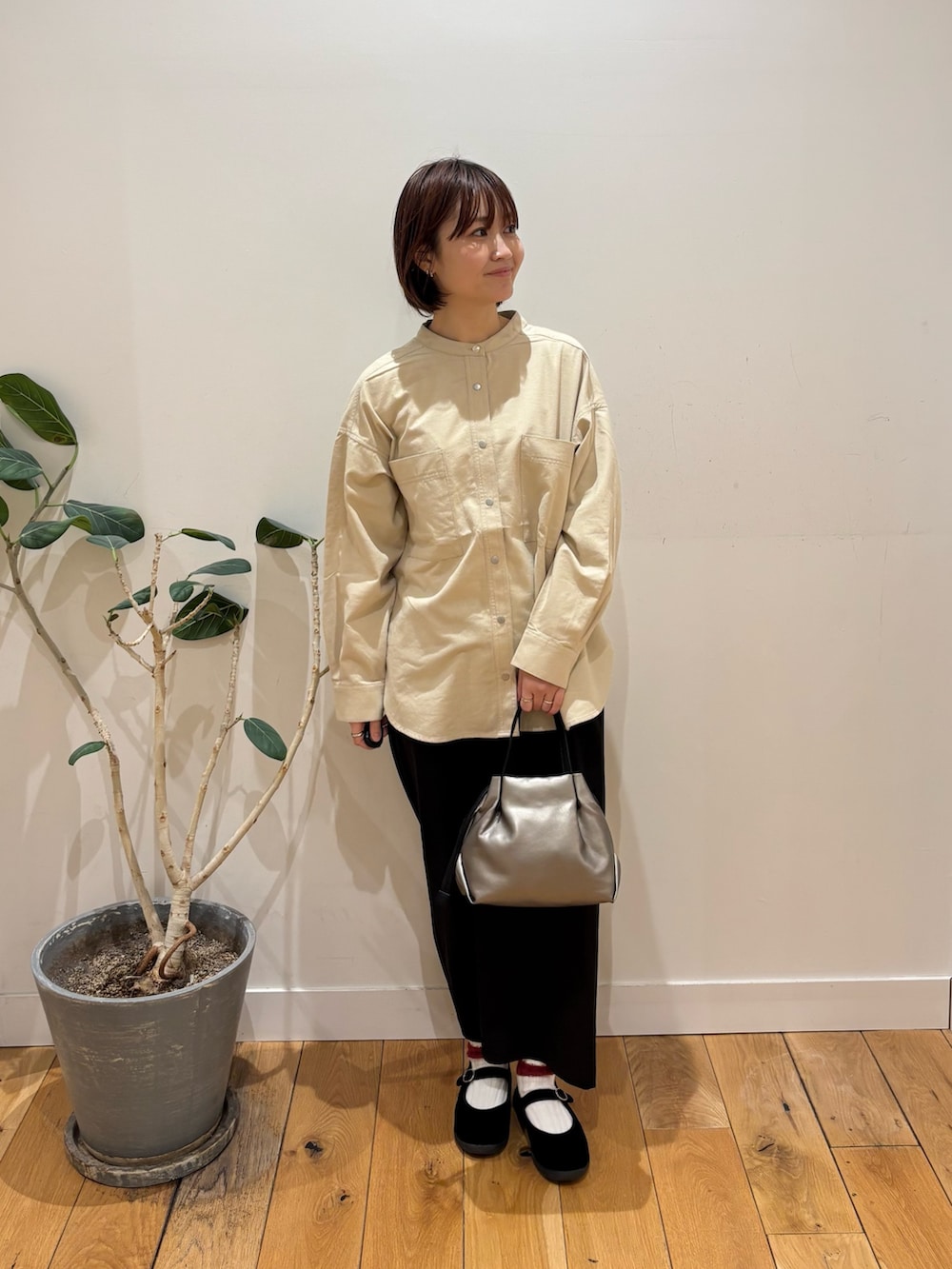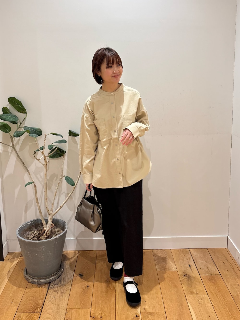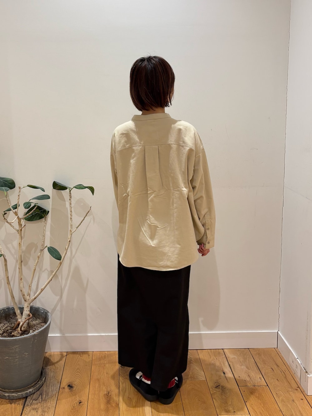 バンドカラーシャツは首周りがすっきりするのでショートヘアの方に特におすすめです!