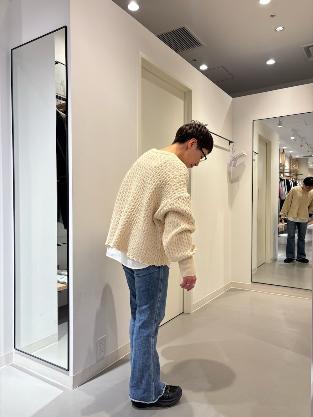 ふんわり柔らかいニット、デニムと合わせた春コーデ。