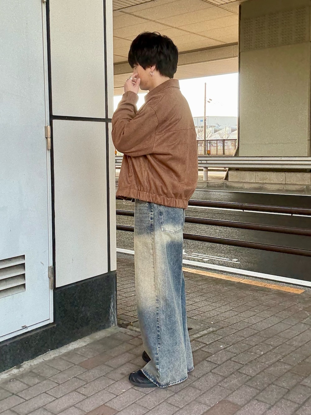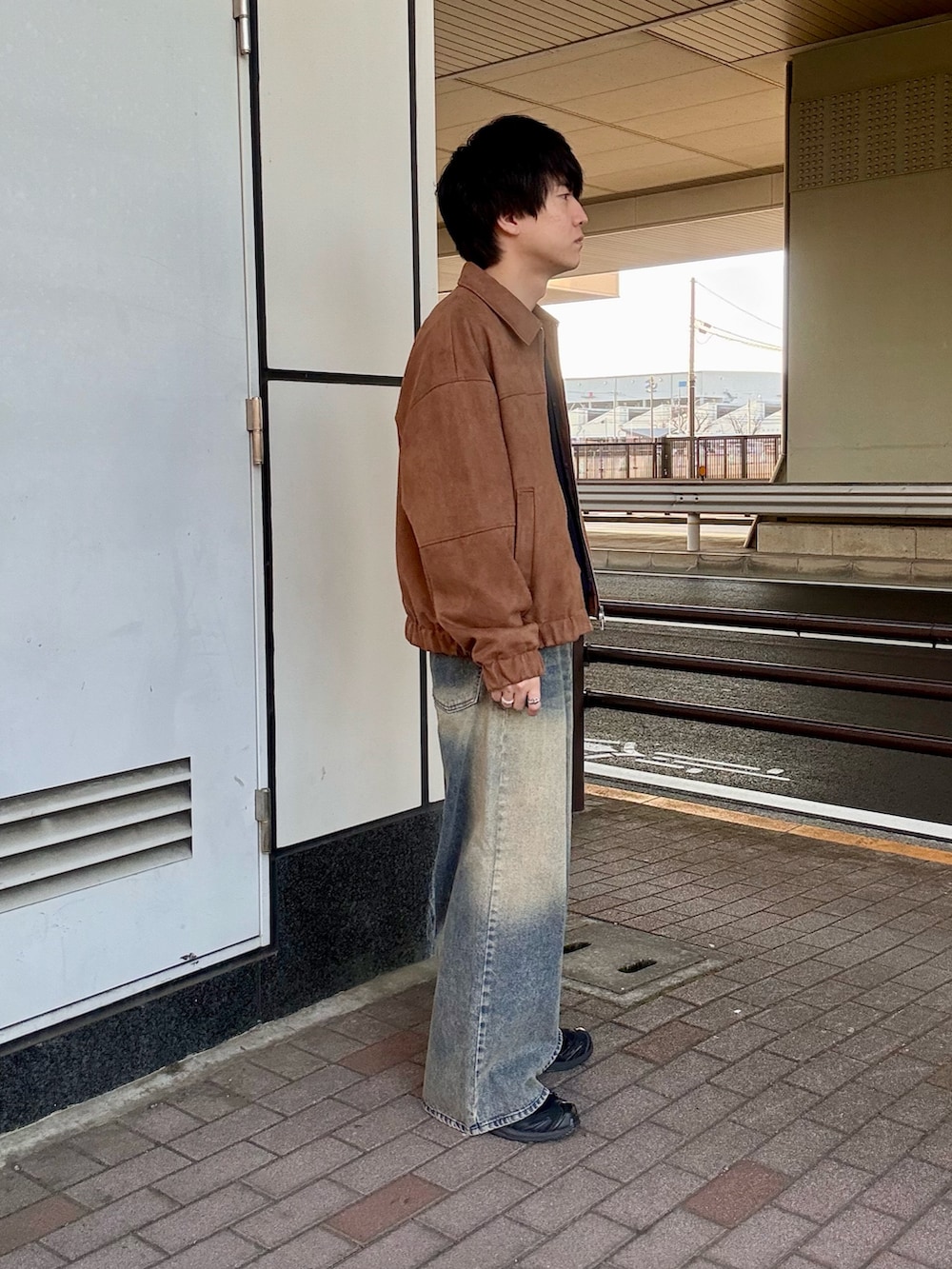 フェイクスェードの生地で高見えするジャケットは程よい身幅で使いやすいです( ・ᴗ・ )