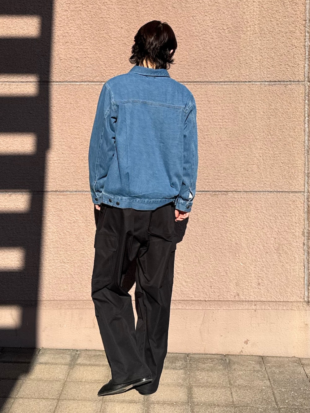 今回のコーディネートはデニムジャケットにカーゴパンツを合わせたコーデです!デニムジャケットはシンプルなデザインで何にでも合わせていただけるアイテムです!カーゴパンツはウエストを紐で調節でき、裾もドローコードが付いているので、自分に合ったサイズ感で履いていただけます!