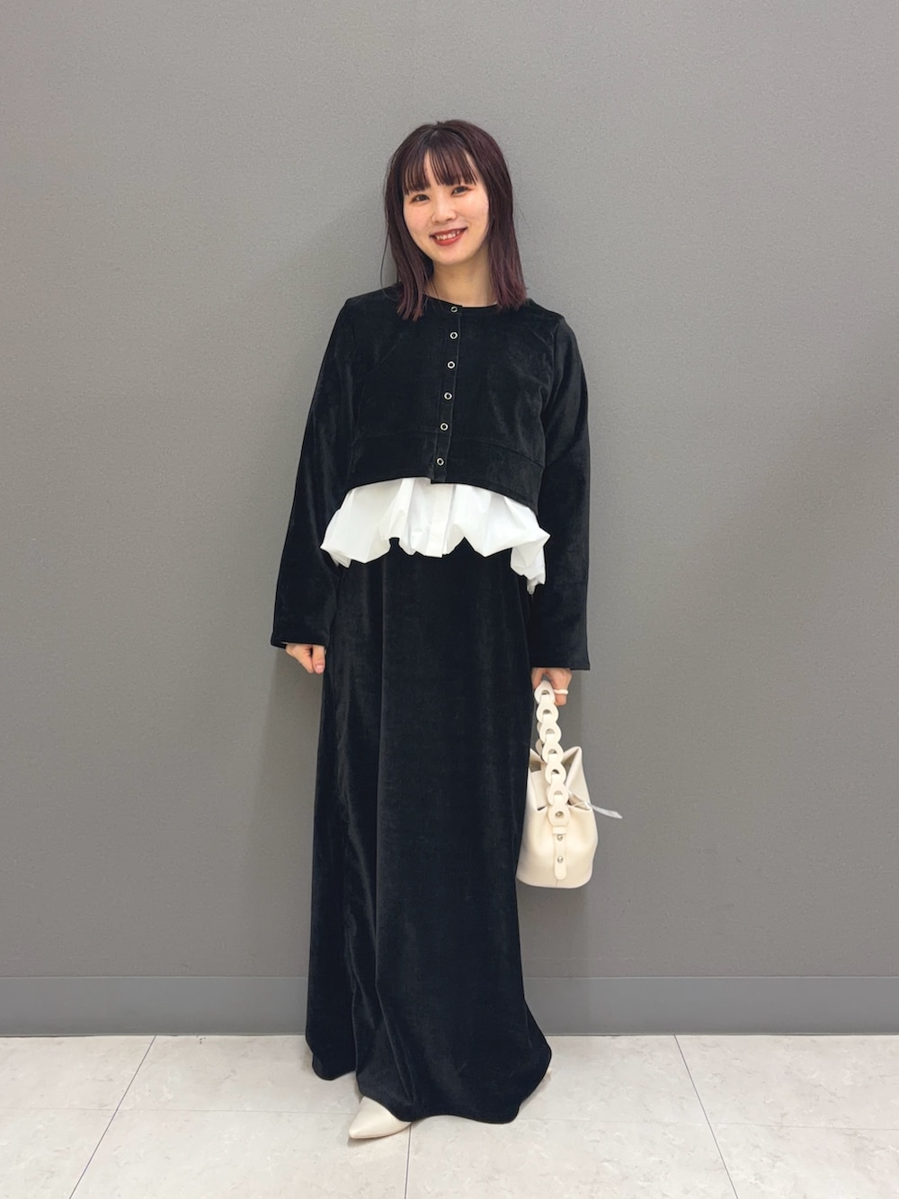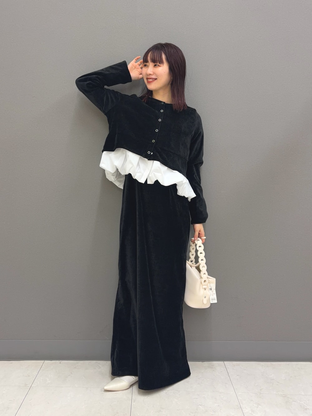セットのベロアワンピースに