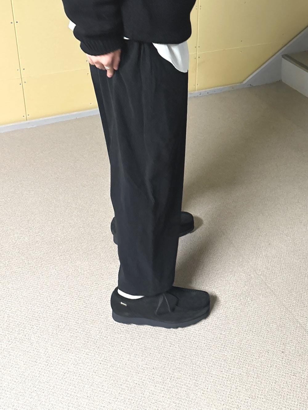 シューズはクラークスを履いていて、履くだけで靴が主役になってしまうくらい存在感が大きいとおもいます!